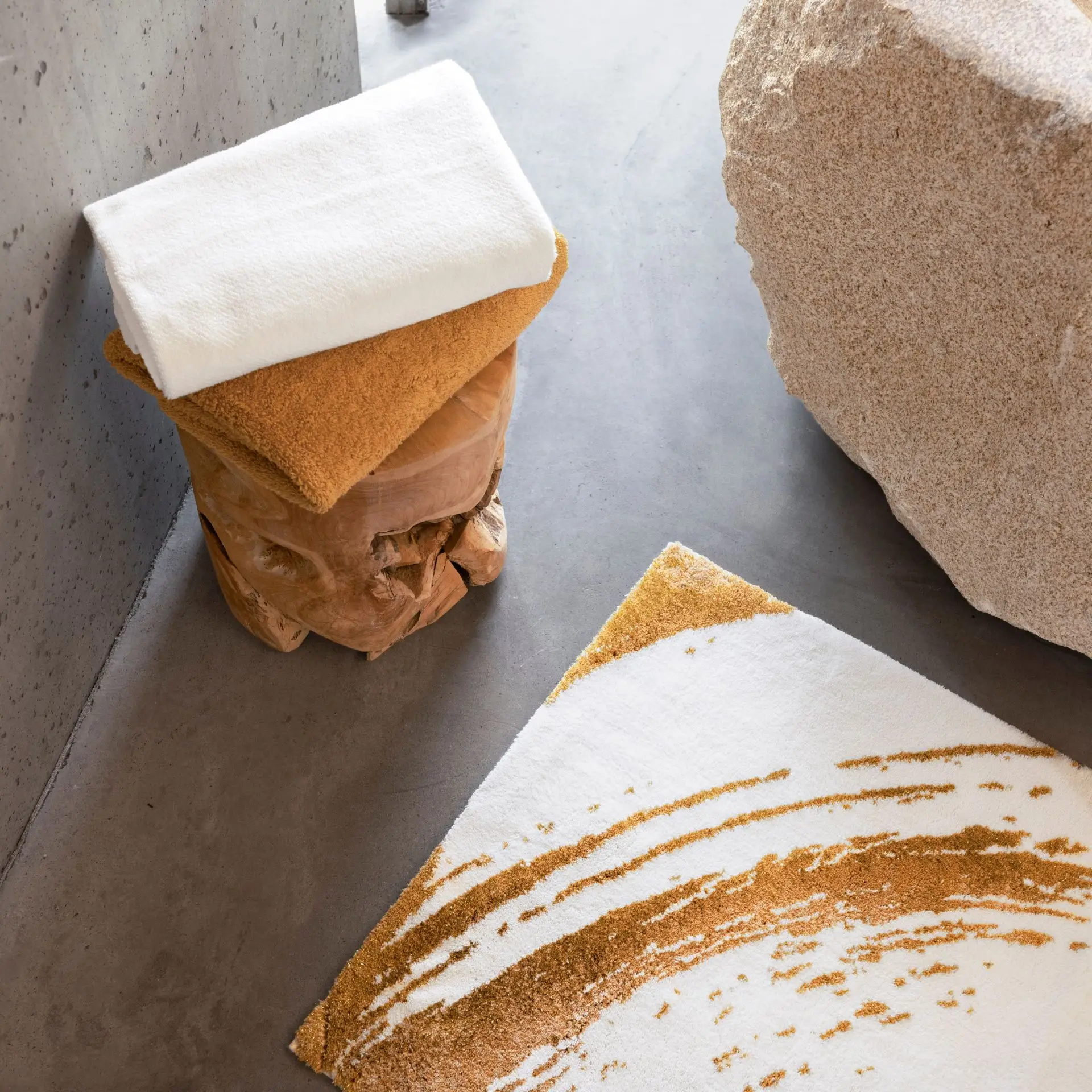 Der Badteppich "Fortuny" von Abyss & Habidecor wirkt durch den natürlich, eleganten Schwung und Farbgestaltung sehr zeitlos. Gefertigt aus 92 % ägyptischer Baumwolle, 5 % Acryl und 3 % Lurex, vereint er Luxus, Pflegeleichtigkeit und Haltbarkeit.