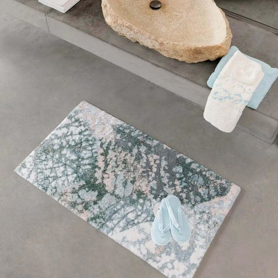 - Farbige Badvorleger sollten Sie mit einem Color-Waschmittel ohne optische Aufheller waschen und auf Weichspüler verzichten, da er die Saugfähigkeit deutlich reduziert. Nutzen Sie lieber nach dem Waschen den Trockner für Ihren Badteppich, es wird dadurch besonders weich.