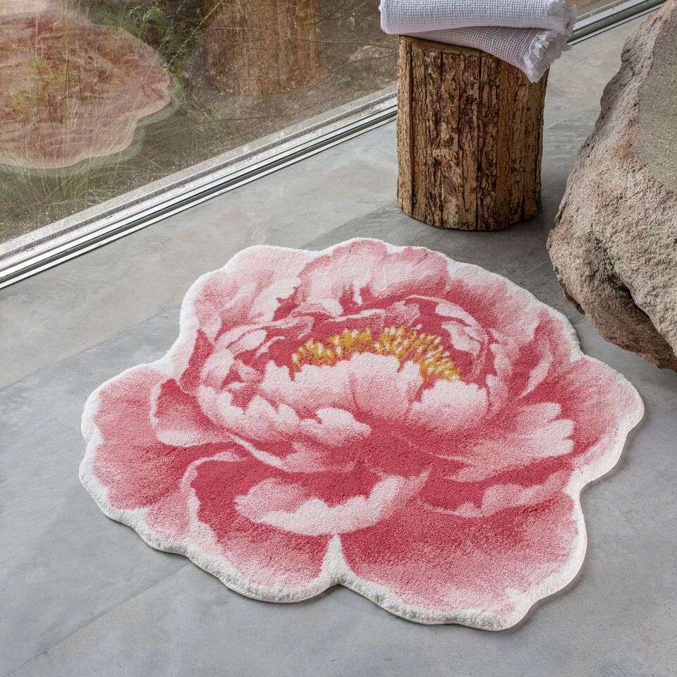 Der Badteppich "Pivoine" von Abyss & Habidecor bringt die Schönheit einer üppig blühenden Pfingstrose in Ihr Badezimmer. Dieser runde Teppich mit einem Durchmesser von ca. 100 cm strahlt eine elegante Fülle und florale Pracht aus. Die zart geschwungenen Blütenblätter in sanften bis hin zu kräftigen Rosatönen auf cremefarbenen Grund schaffen dabei eine beruhigende Atmosphäre. Der Badteppich besteht zu 100 % aus ägyptischer Giza Baumwolle, was ihn saugstark und komfortabel, sowie rutschfest macht.