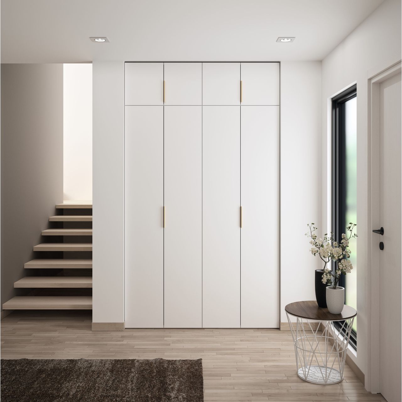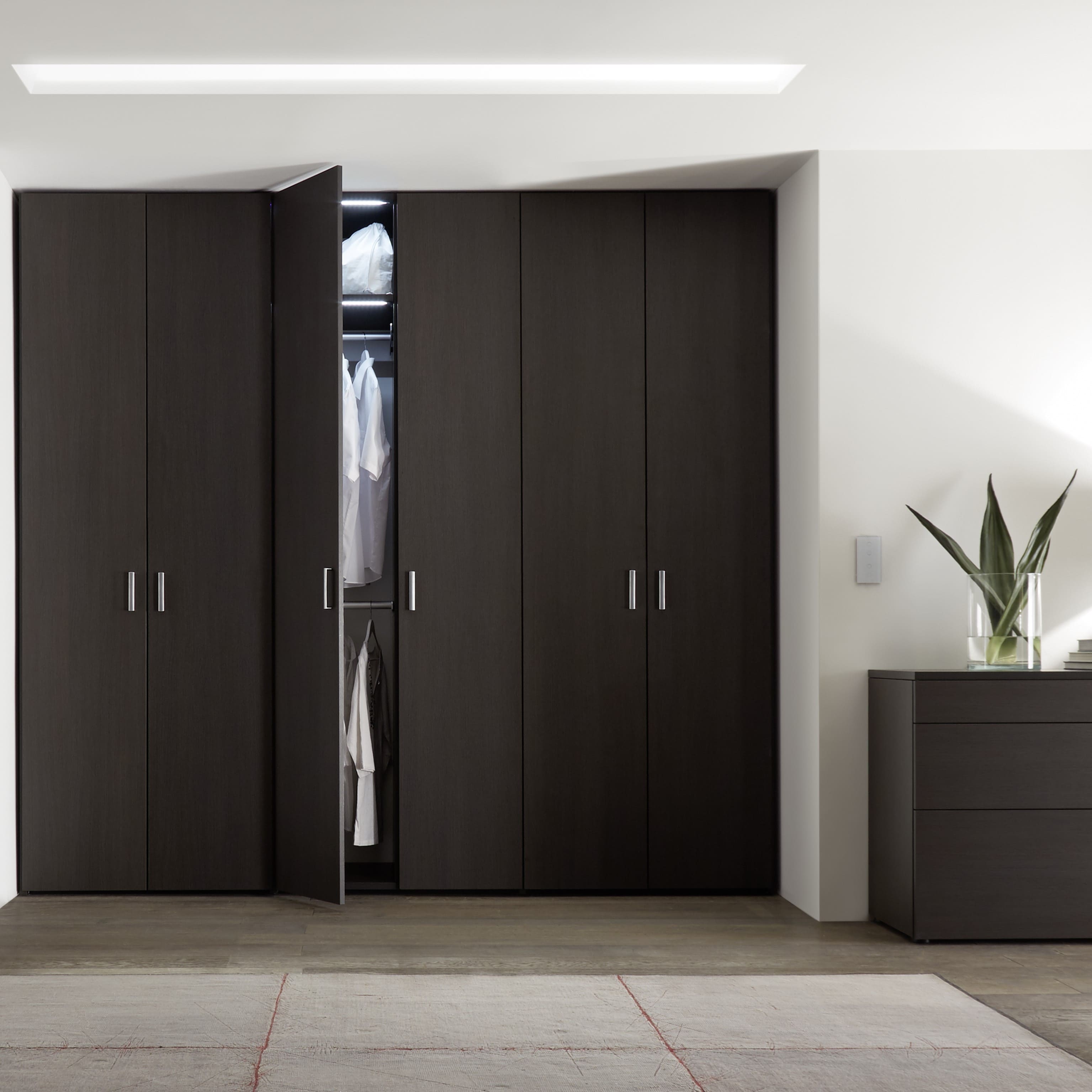 Wahlweise mit Drehtüren oder Schiebetüren, aber auch als offener Kleiderschrank in einem eigenen Raum möglich. Durch Fachbreiten bis 100 cm und eine Höhenvariabilität bis 275 cm erhalten Sie eine Vielfalt an Einsatzmöglichkeiten. dieses Schranksystems.