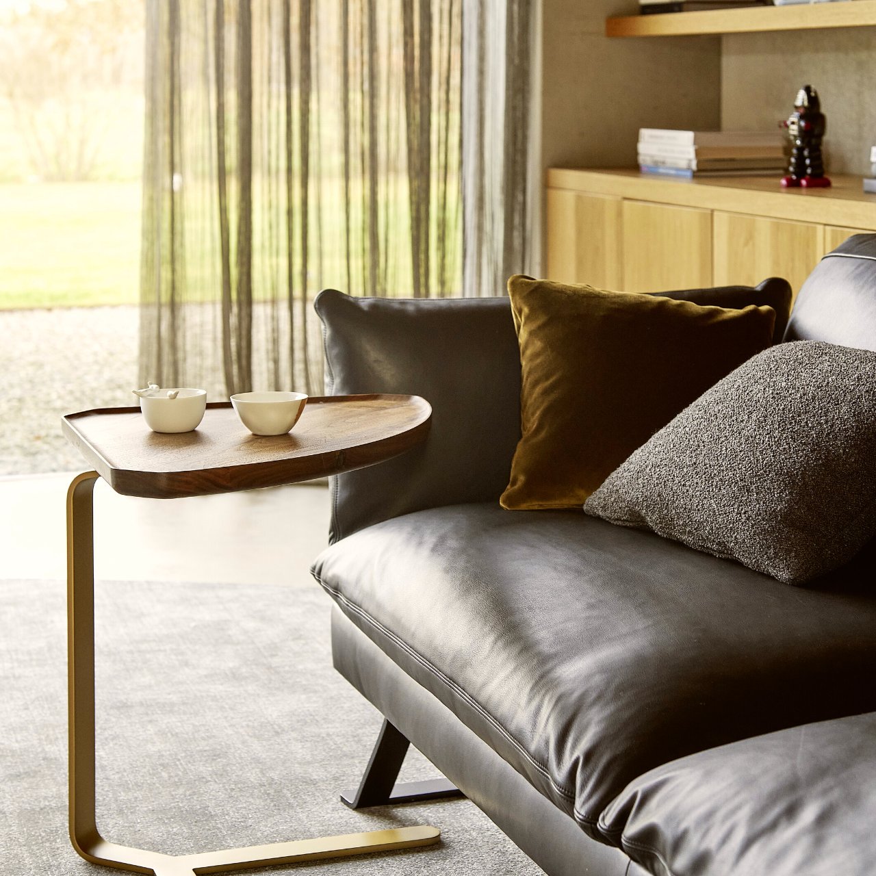 Der feingliedrige Beistelltisch "Joy" von BIELEFELDER WERKSTÄTTEN ist aufgrund seiner eigenständigen Formensprache und den wertigen Materialien die ideale Ergänzung als Nachttisch oder zu jeder Polstergruppe. Durch die dreieckige, moderne Form der Platte, die asymetrisch auf dem Metallgestell platziert wurde, kann der Tisch bis über die Polster gezogen werden und alle Accessoires wie Gläser und Snacks in Griffnähe zur Verfügung stellen. Der filigrane Beistelltisch wurde vom Designer Andreas Weber entworfen.