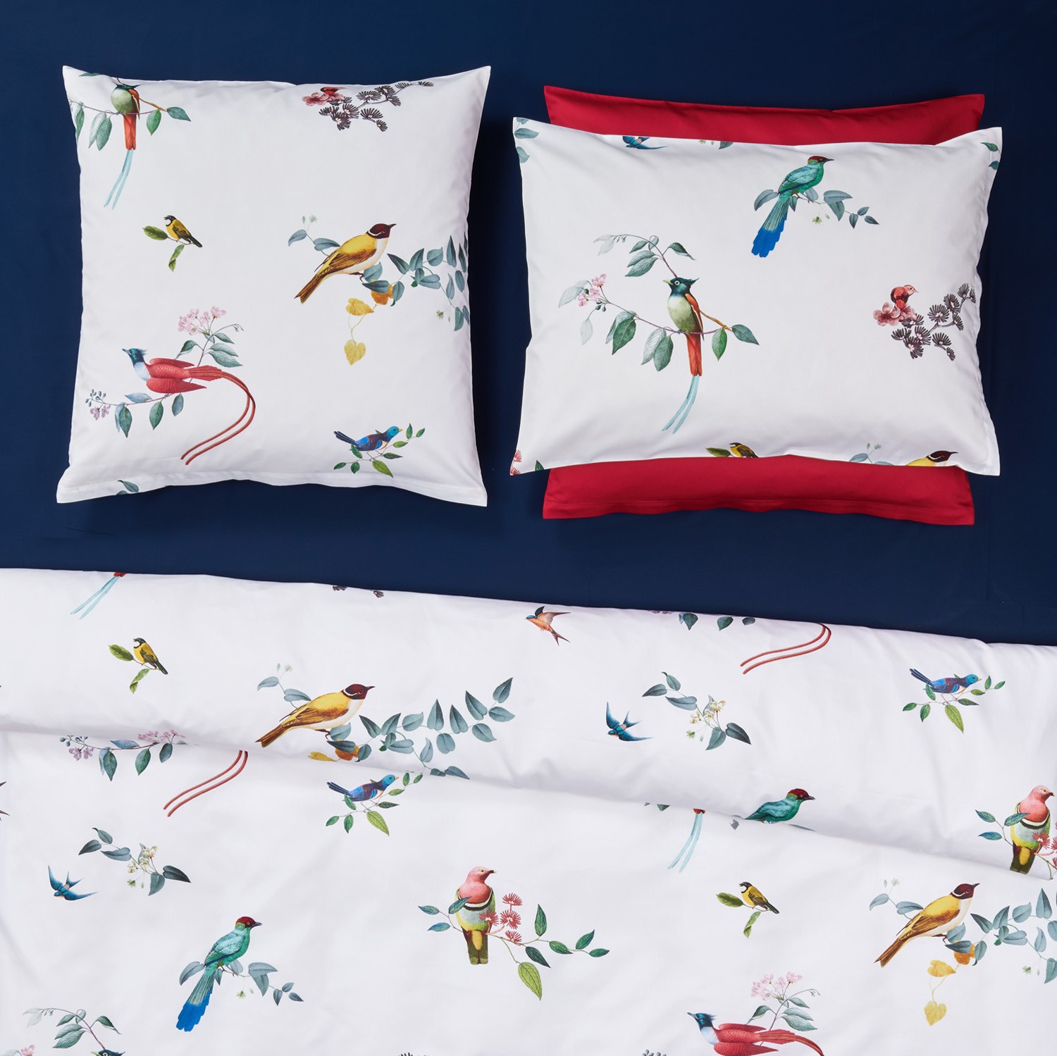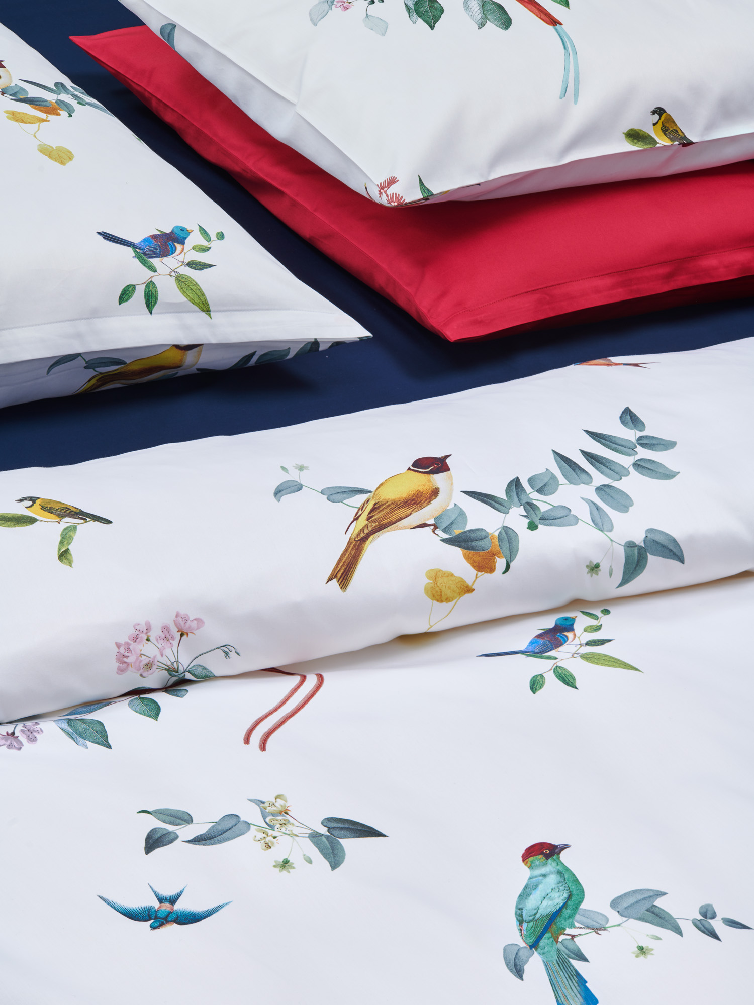 Ein Duett aus Poesie und Traum präsentiert sich Ihnen bei der Bettwäsche "Haiku Nouveau" von Christian Fischbacher. Exotische Vögel auf japanisch inspirierten Zweigen, sorgfältig komponierte Farben und naturalistische Darstellung mit viel Weißraum. Die Bettwäsche ist aus feinstem Baumwollsatin gefertigt und eine Hommage an die Poesie der malerischen Kunst.