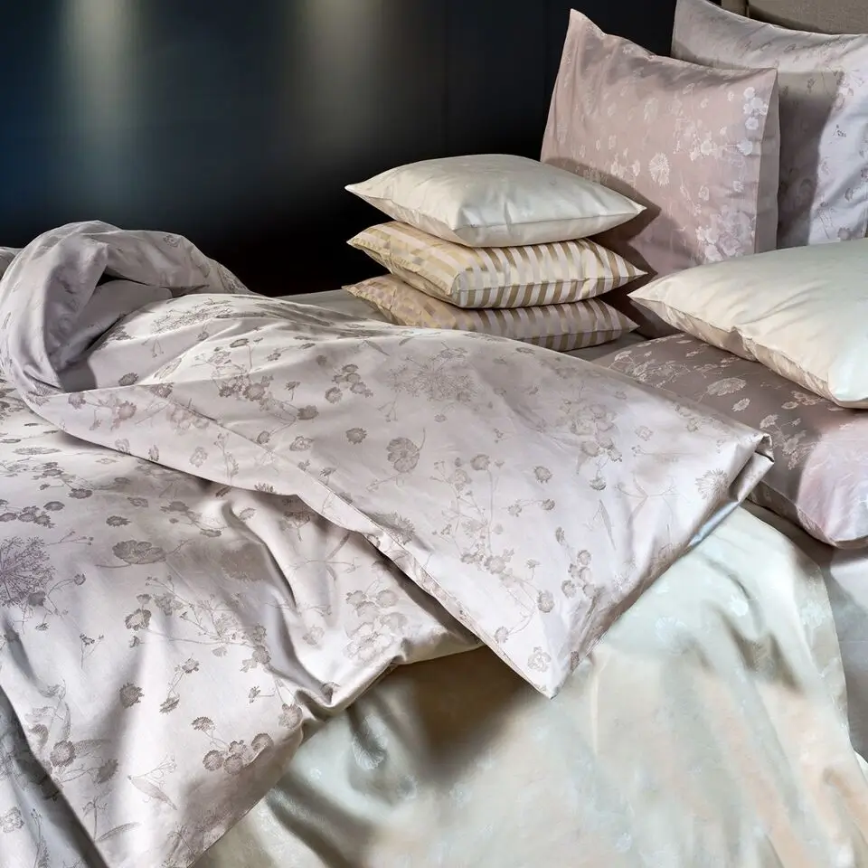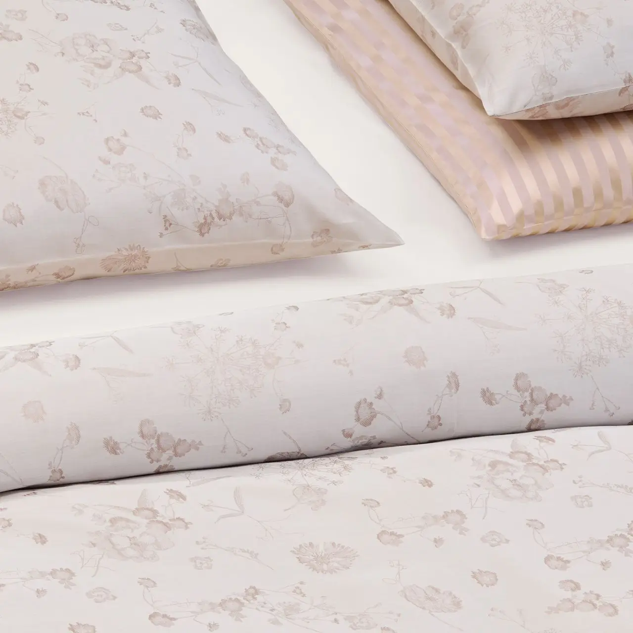 Die Jacquard-Bettwäsche „Fiori Pastello“ von Christian Fischbacher verzaubert mit ihrem zarten floralen Design in sanften Pastelltönen. Filigrane Blüten, zierliche Blattranken und feine Dolden entfalten sich auf der edlen, matt-glänzenden Jacquard-Oberfläche und verleihen Ihrem Schlafzimmer einen romantischen, modernen Look. Die Farben rosé oder beige unterstreichen die zeitlose Eleganz dieses traumhaften Dessins.