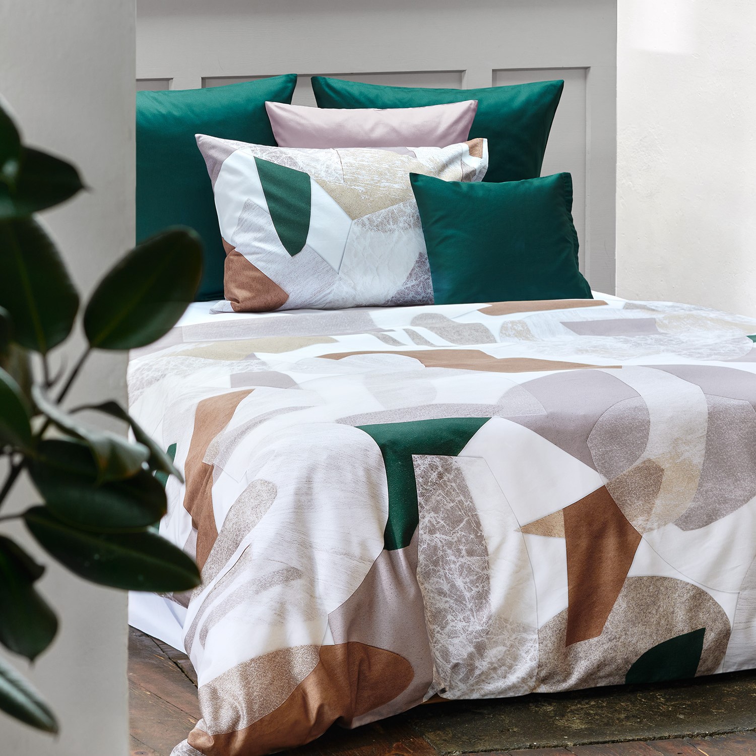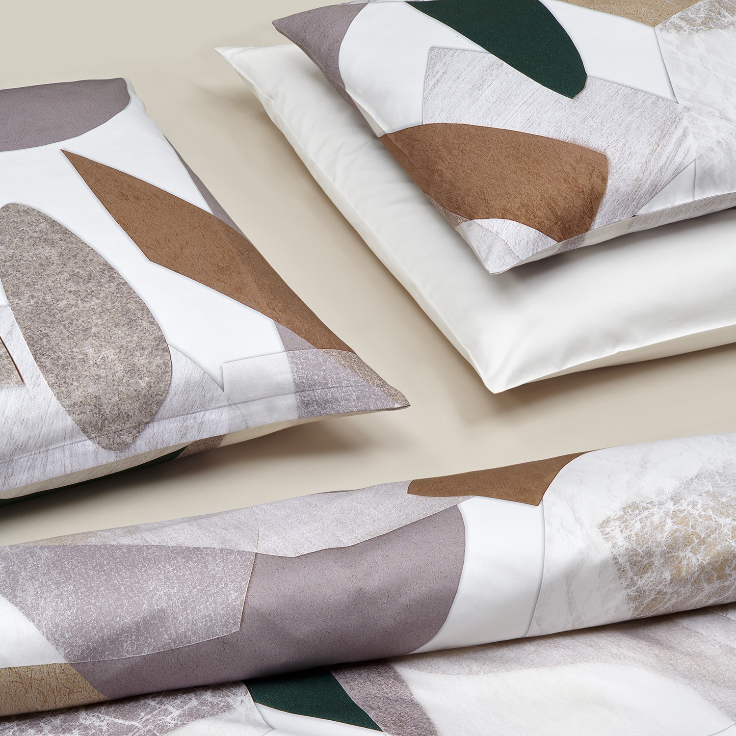 Mit der Bettwäsche "Unique" präsentiert Christian Fischbacher mit abstrakten Silhouetten auf weißem Baumwollsatin ein einzigartiges modernes Kunstwerk, welches vom Kubismus inspiriert wurde. Die edle Kombination aus Grau-, Braun- und Dunkelgrüntönen und die Marmor-anmutende Struktur geben den gedruckten Formen eine ungewöhnliche Exklusivität, welche Ihr Schlafzimmer zu einer Wohlfühloase macht und für Ihren perfekten Schlaf sorgt. Lassen Sie sich in Ihre persönliche Galerie einladen.