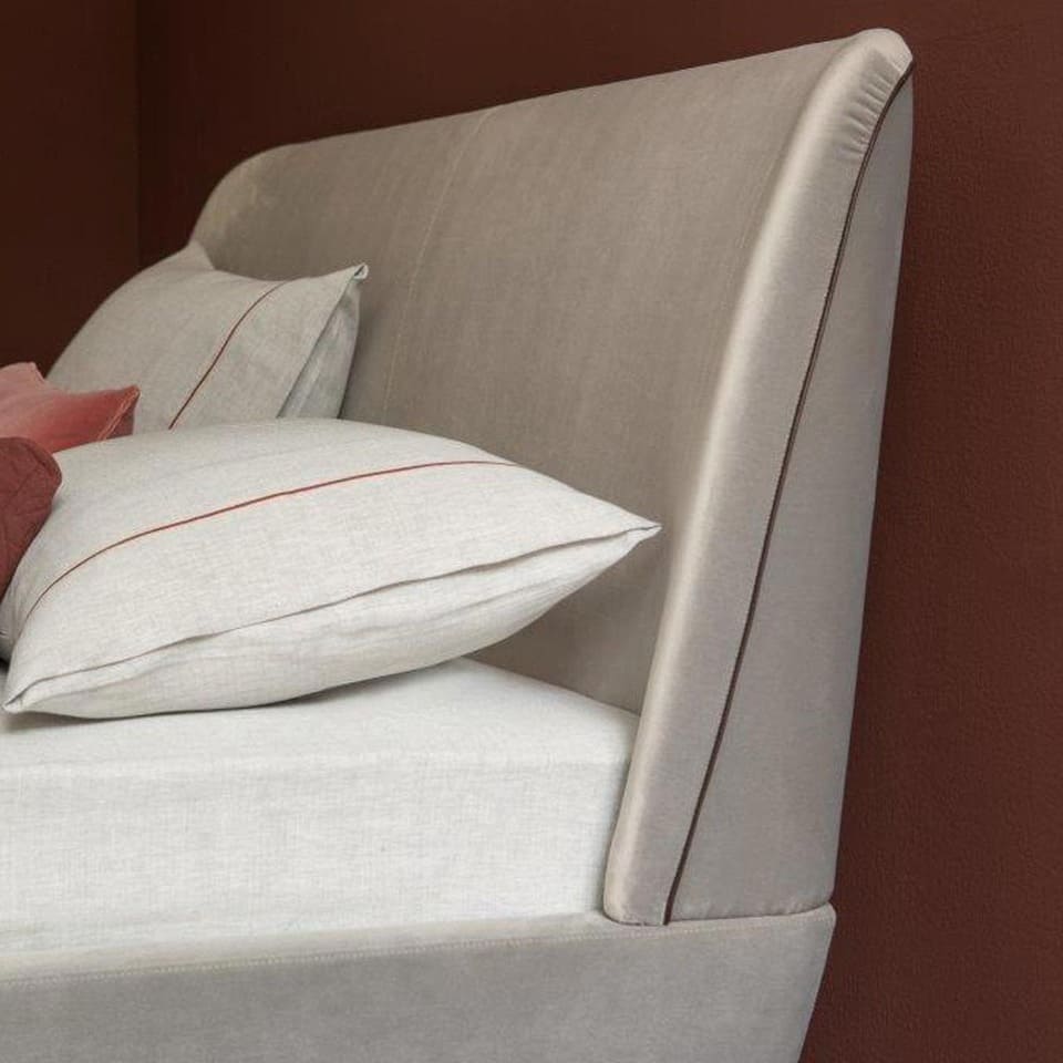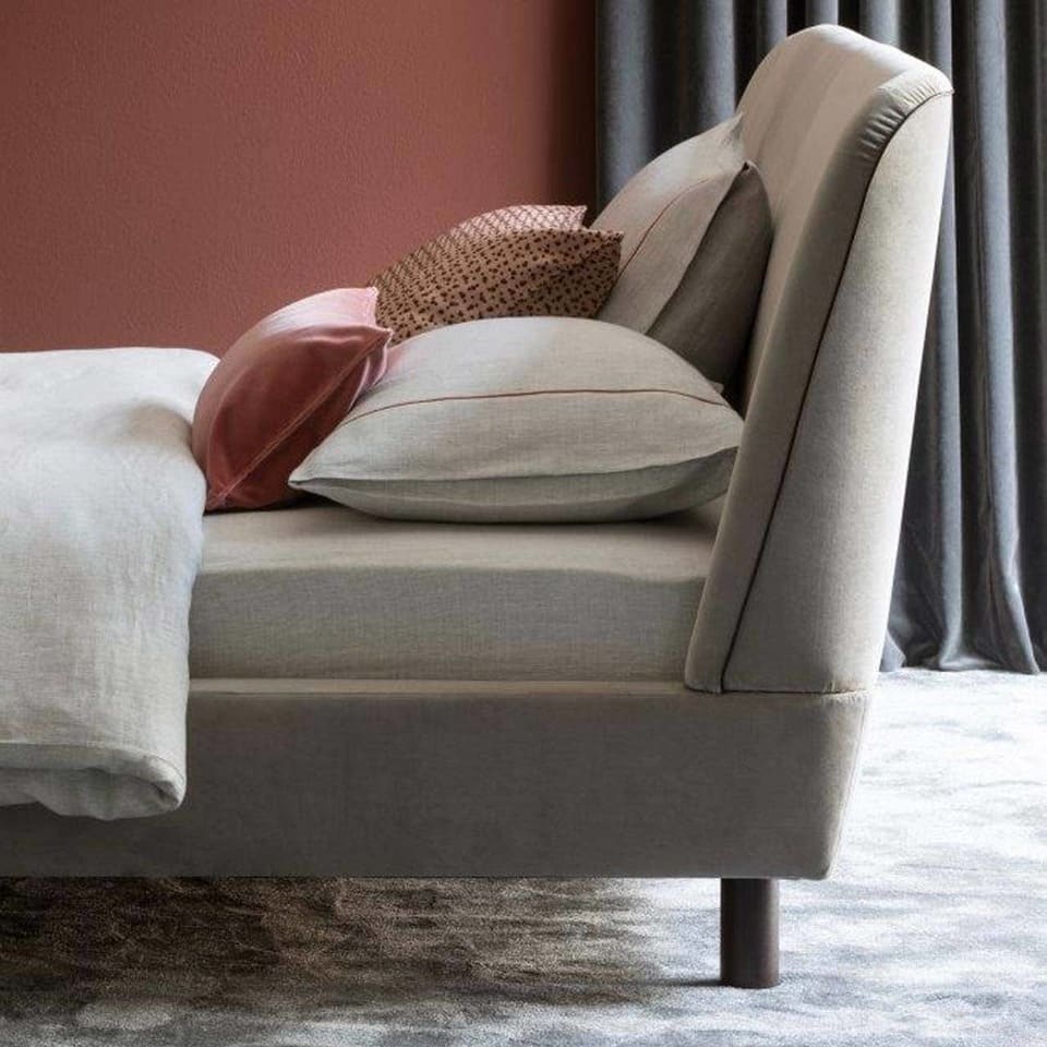 Das Polsterbett "Lalune" von Christine Kröncke Interior Design ist ein leichtes Polsterbett und sieht rundum gut aus. Dieses Polsterbett besticht durch die klare, elegante Linienführung mit einer eher geringeren Aufbauhöhe und ist somit auch exzellent für kleinere Räume geeignet ohne den Raum zu erdrücken. Das elegante Kopfteil mit dem Keder ist leicht gerundet und gibt einen guten Halt beim Lesen und steht doch für Gemütlichkeit. Der Bettrahmen aus Massivholz können Sie mit Stoff oder Leder bezogen erhalten.