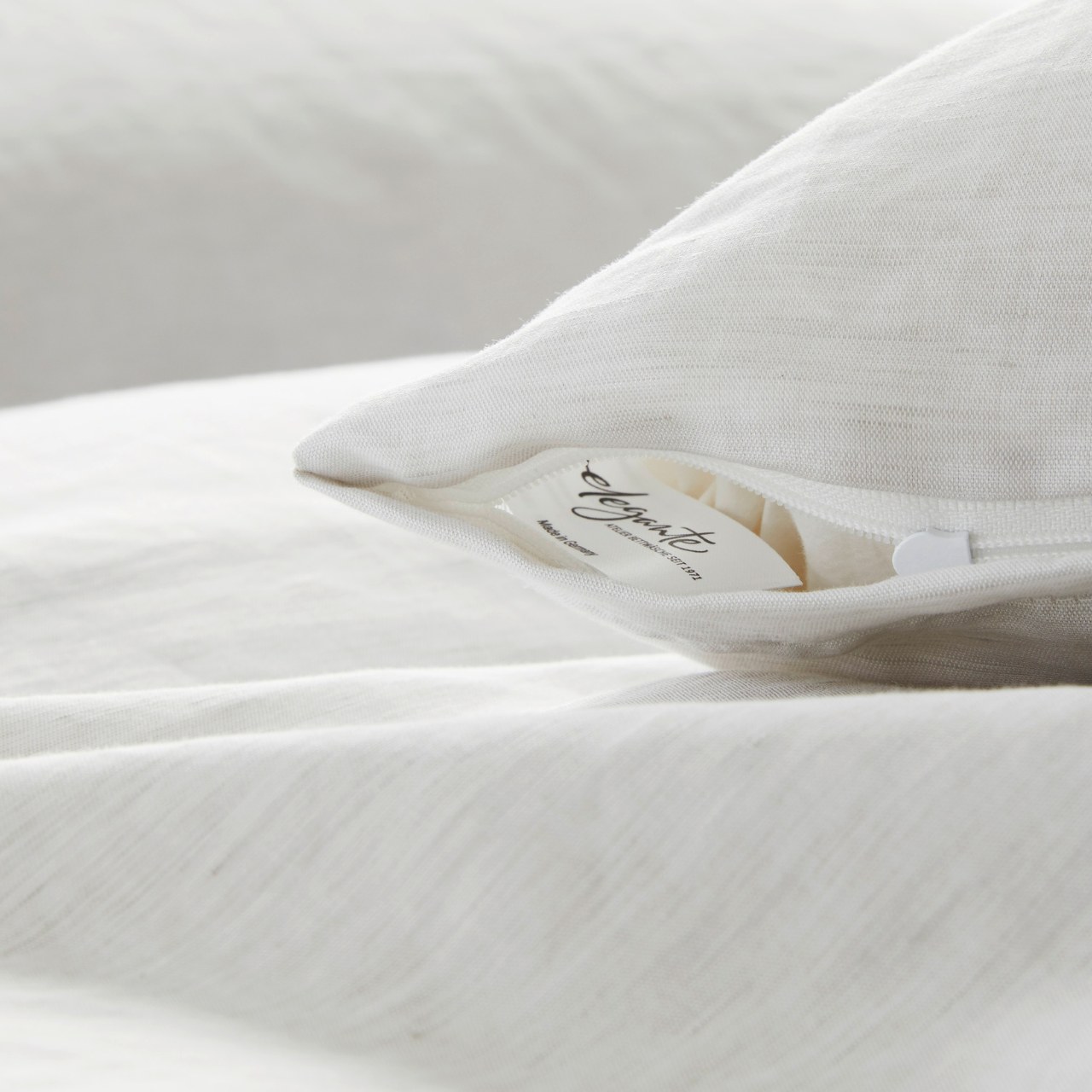 Der lässige Look der Halbleinen Bettwäsche "Breezee" von Elegante ist das Merkmal aus einem Leinen-Baumwoll-Mix. Die Bettwäsche "Breeezee" aus Halbleinen ist perfekt für den Sommer geeignet. Diese Halbleinen Bettwäsche ist besonders weich und angenehm auf der Haut und schmeichelt allen Sinnen durch die leichte Melange-Optik. Diese buntgewebte Bettwäsche im Uni-Design ist vorgewaschen und hat so bereits von Anfang an eine entspannte Used-Optik. Sie können den lässigen Look der Bettwäsche "Breezee" einfach so aufziehen und genießen oder für den faltenfreien Genuss bügeln. Diese Bettwäsche schließt mit einem hochwertigen Reißverschluss.