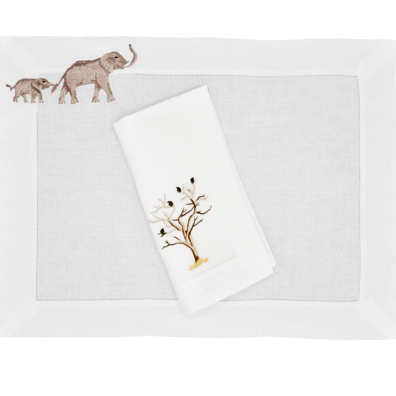Die Leinentischwäsche "Afrika" präsentiert ERI TEXTILES handgestickt und in ihrer schönsten Form als elegante Tischwäsche mit Hohlsaum. Die Tiere der Savanne werden in feinster Farbabstimmung und der Liebe zum Detail dargestellt Die von der Textilkünstlerin Erika Lassen entworfene Kollektion wird von erfahrenen Stickerinnen in aufwendiger Handarbeit umgesetzt und begeistert durch Eleganz, Präzision und Kreativität.