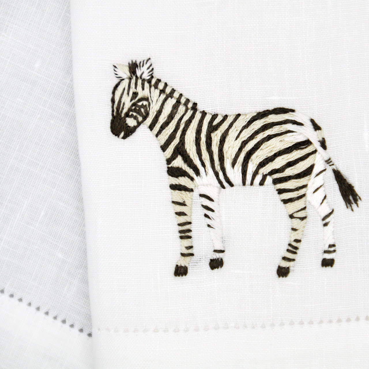 Die Leinentischwäsche "Afrika" präsentiert ERI TEXTILES handgestickt und in ihrer schönsten Form als elegante Tischwäsche mit Hohlsaum. Die Tiere der Savanne werden in feinster Farbabstimmung und der Liebe zum Detail dargestellt Die von der Textilkünstlerin Erika Lassen entworfene Kollektion wird von erfahrenen Stickerinnen in aufwendiger Handarbeit umgesetzt und begeistert durch Eleganz, Präzision und Kreativität.