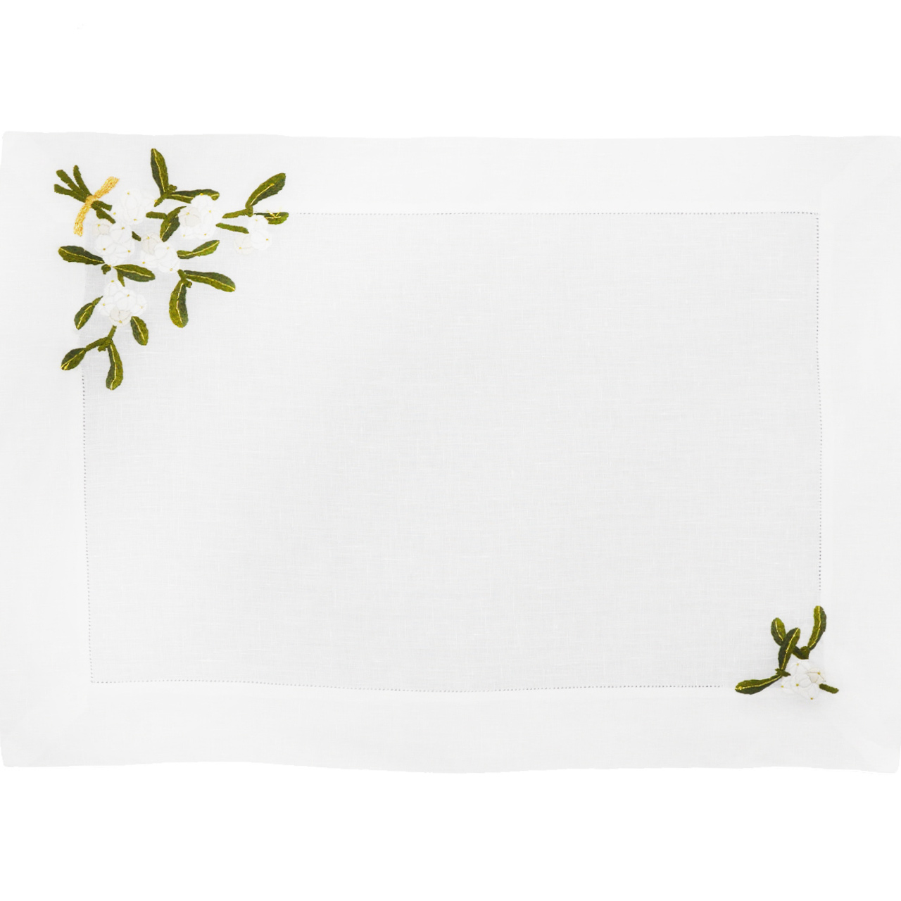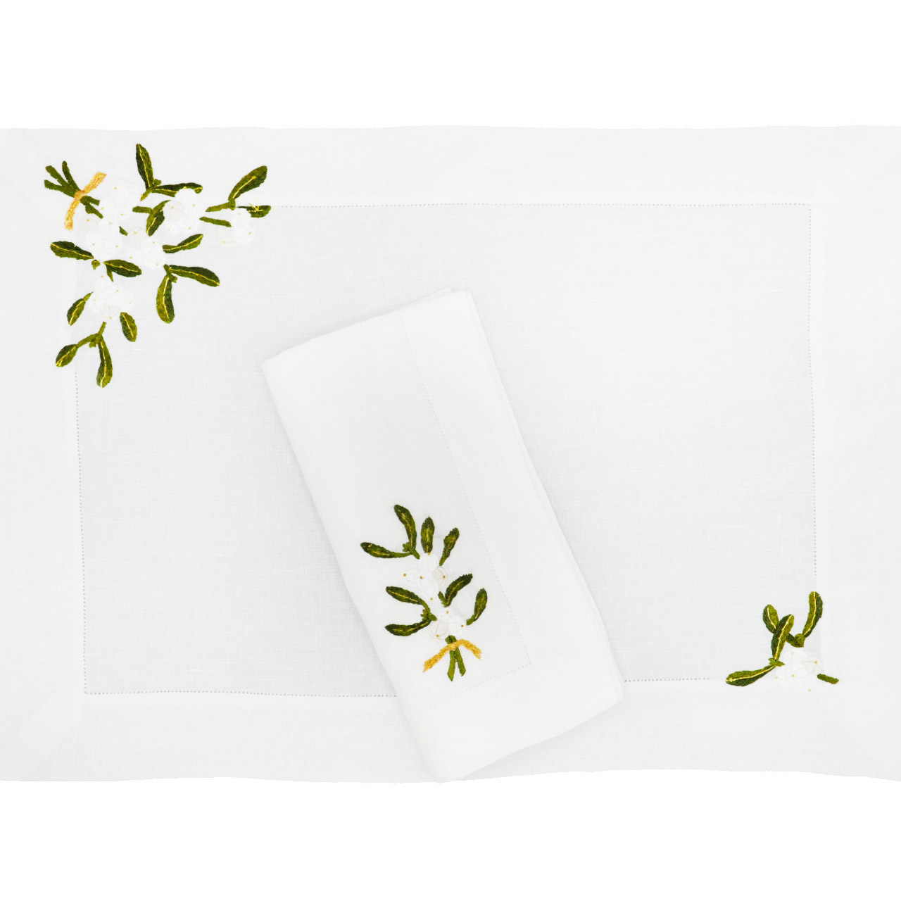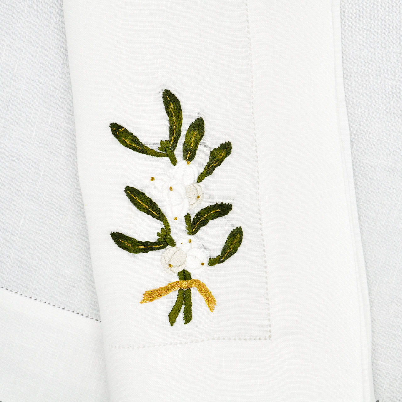 Die Leinentischwäsche "Mistelbund" präsentiert ERI TEXTILES handgestickt und in ihrer schönsten Form als elegante Tischwäsche mit Hohlsaum. Mit einer feinen Farbabstimmung und der Liebe zum Detail, verbreitet sie weihnachtliche Stimmung in Ihrem Esszimmer. Die von der Textilkünstlerin Erika Lassen entworfene Kollektion wird von erfahrenen Stickerinnen in aufwendiger Handarbeit umgesetzt und begeistert durch Eleganz, Präzision und Kreativität.