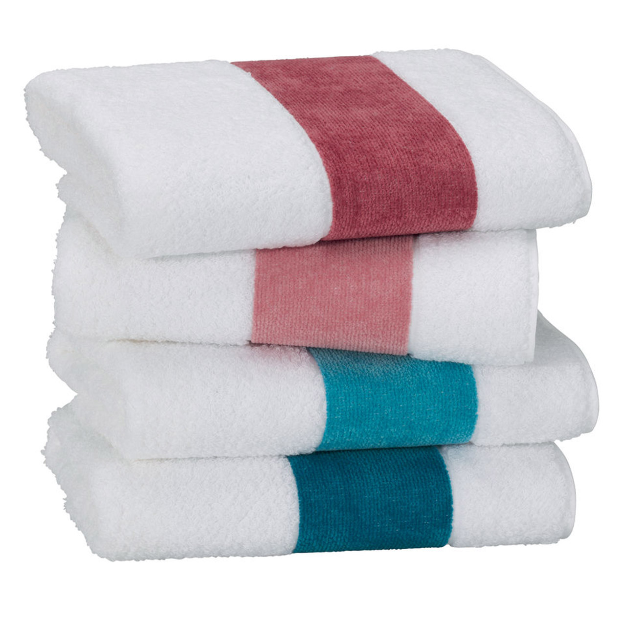- Gewebe: weißes Frottier mit einer Bordüre in 60 Farben