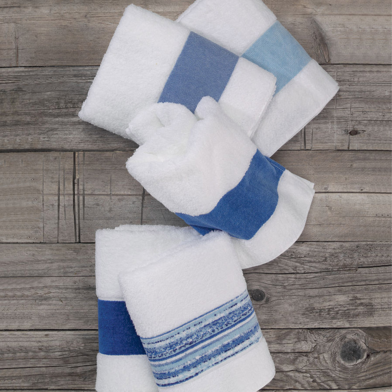 • Gewebe: weißes Frottier mit einer Bordüre in 60 Farben