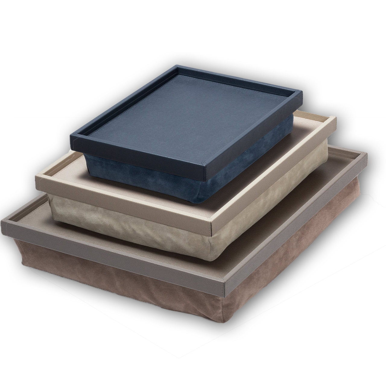 Das Polstertablett "Teddy" aus der italienischen Ledermanufaktur GIOBAGNARA eignet sich für viele verschiedene Aktivitäten: durch das weiche Polster aus Veloursleder - gefüllt mit Mikroperlen - bleibt das Tablett immer im Gleichgewicht, da es sich z.B. Ihrer Beinform anpasst. Einem unbeschwerten Frühstück im Bett oder der längeren Benutzung eines Laptops steht also nichts mehr im Wege. Die Oberfläche ist mit wasserabweisendem Leder bezogen und lässt sich mit einem feuchten Tuch leicht reiningen.