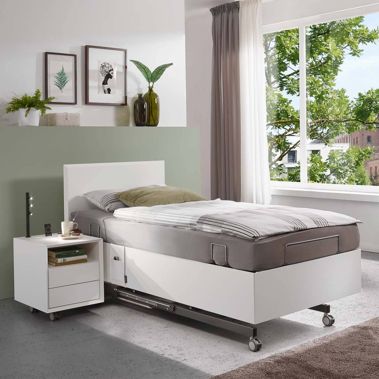Die unsichtbare motorische Höhenverstellung und die motorisch verstellbare Liegefläche sind per Fernbedienung einstellbar. Durch die parallel zur Bettseite verschiebbare Nachttische haben Sie alle wichtigen Dinge jederzeit im Griffbereich und die optionalen Seitenherausfallschutz-Panels und eine belastbare Aufrichthilfe geben Ihnen immer das Gefühl, eine sichere Unterstützung zur Seite zu haben. Für die Vorteile mühelosen Aufstehens können Sie sich als Einzel- oder Doppelbett entscheiden.