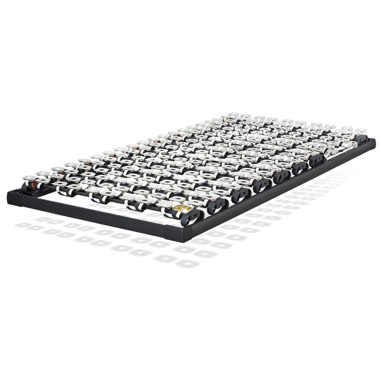 Diese Unterfederung von LATTOFLEX hat keine Verstellmöglichkeit. Dieser Lattenrost hat ein metallfreies, glasfaserverstärktes Rahmen-Chassis mit Federlementen aus Kunststoffen.