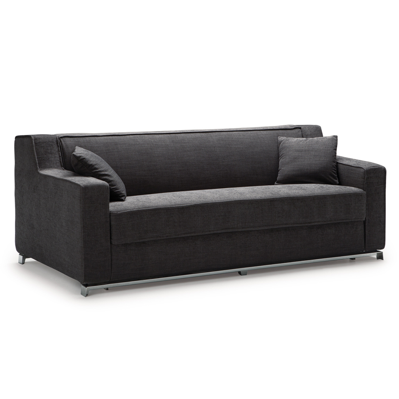 Das Schlafsofa "Larry" von MILANO BEDDING ist ein elegantes Sofa mit klaren Linien, das sich perfekt in moderne und exklusive Einrichtungen einfügt. Der abnehmbare Bezug ist je nach gewähltem Stoff vollständig waschbar und somit äußerst pflegeleicht. Durch einfaches Drehen der Rückenlehne entsteht ein vollständiges Bett, ohne dass das Kissen verschoben werden muss. Darüber hinaus können Kopfkissen bequem im Behälter der Rückenlehne aufbewahrt werden. Larry vereint auf perfekte Weise Funktionalität und Design und ist somit die ideale Wahl für alle, die auf der Suche nach einem stilvollen und praktischen Möbelstück sind.