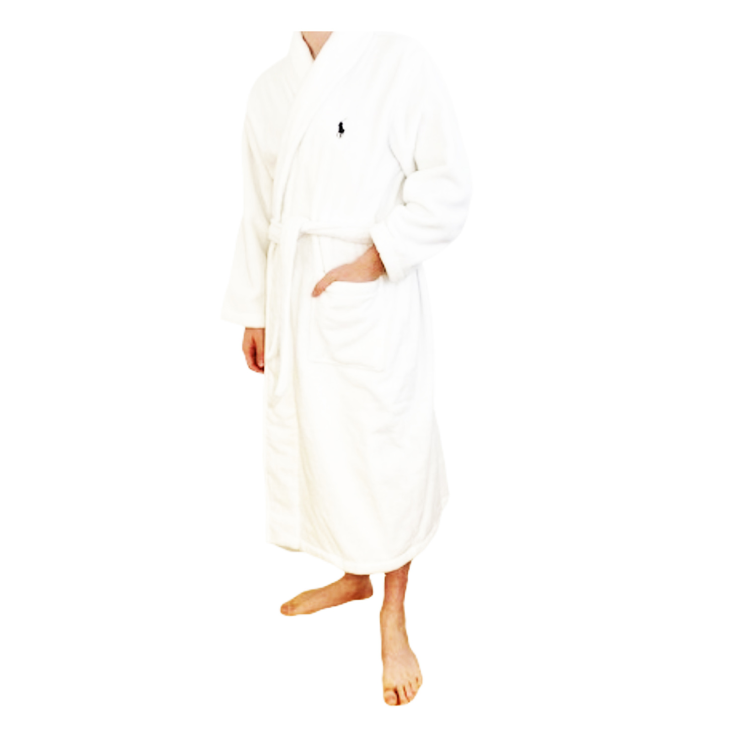 Komfortabler und super kuscheliger Bademantel mit Schalkragen in strahlendem weiß aus reiner Baumwolle umhüllt Sie mit dicht gearbeitetem Frottier. Er ist angenehm wärmend, besonders saugstark und hat eine leichte Schwere. Der Bademantel hat das typische gestickte Pony auf der linken Brust.