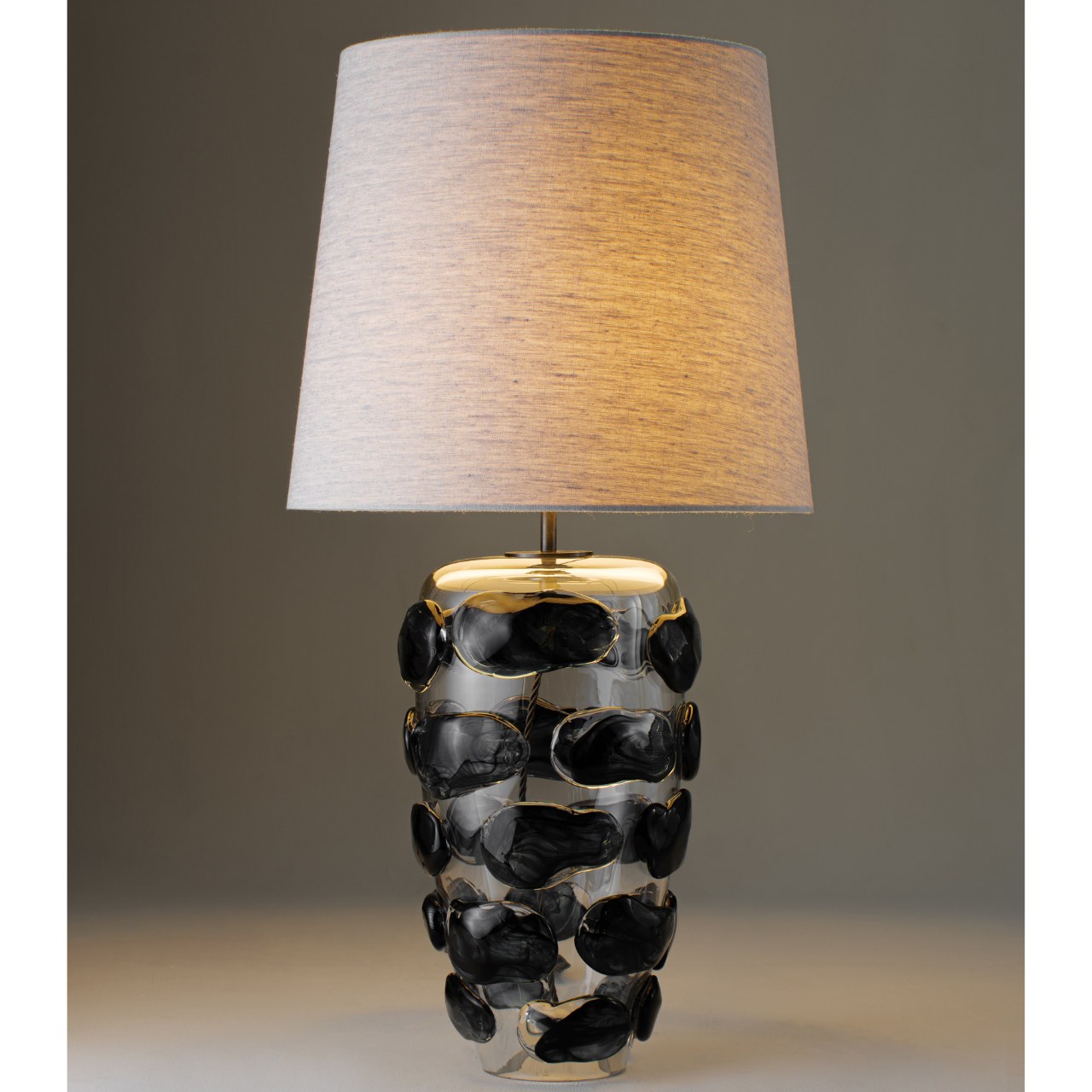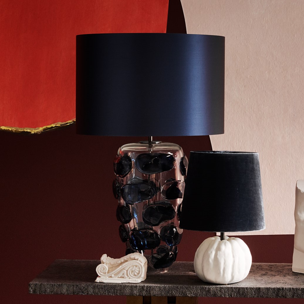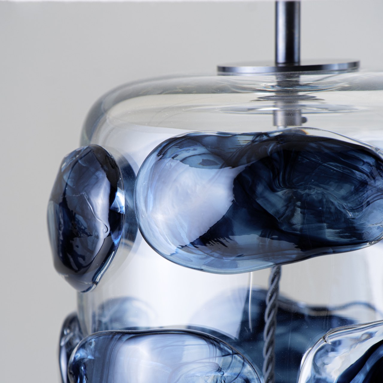 Die moderne überdimensionierte Tischleuchte "Blob" von Porta Romana hat einen übergroßen mundgeblasenen Corpus. Die farbigen Glaskleckse (Blobs) sitzen auf dem Lampenkörper aus transparentem Glas und haben ihre eigene wirbelnde Textur, die beim Anschalten der Leuchte zum Leben erwacht. Die exklusive Tischleuchte „Blob" ist ein Porta Romana Klassiker und passt besonders gut als Lichtquelle auf Beistelltische, Kommoden oder Nachttische. Für die bestmögliche Passung in Ihr privates Umfeld, haben Sie die Wahl zwischen vielen Optionen zur Individualisierung.