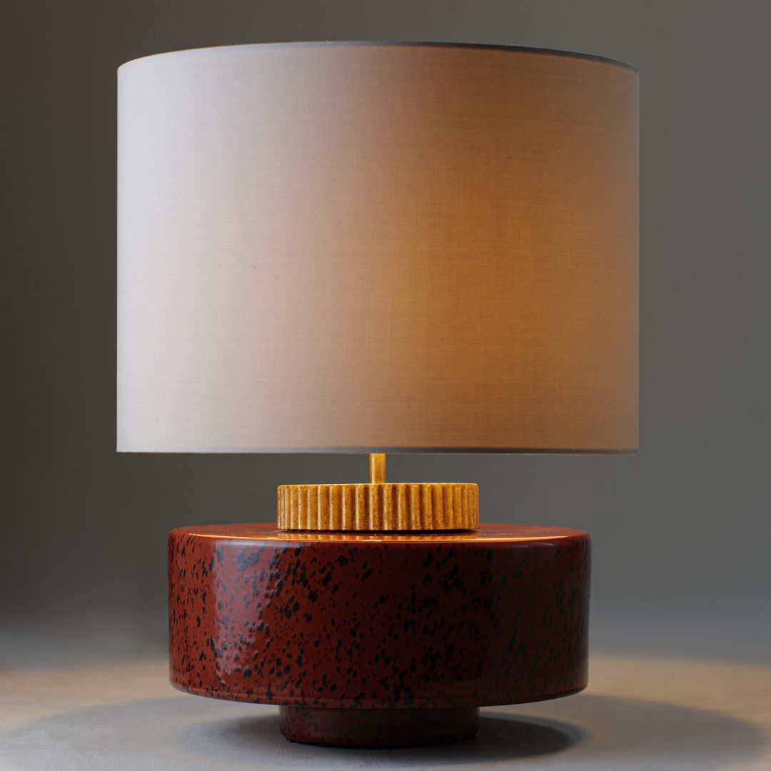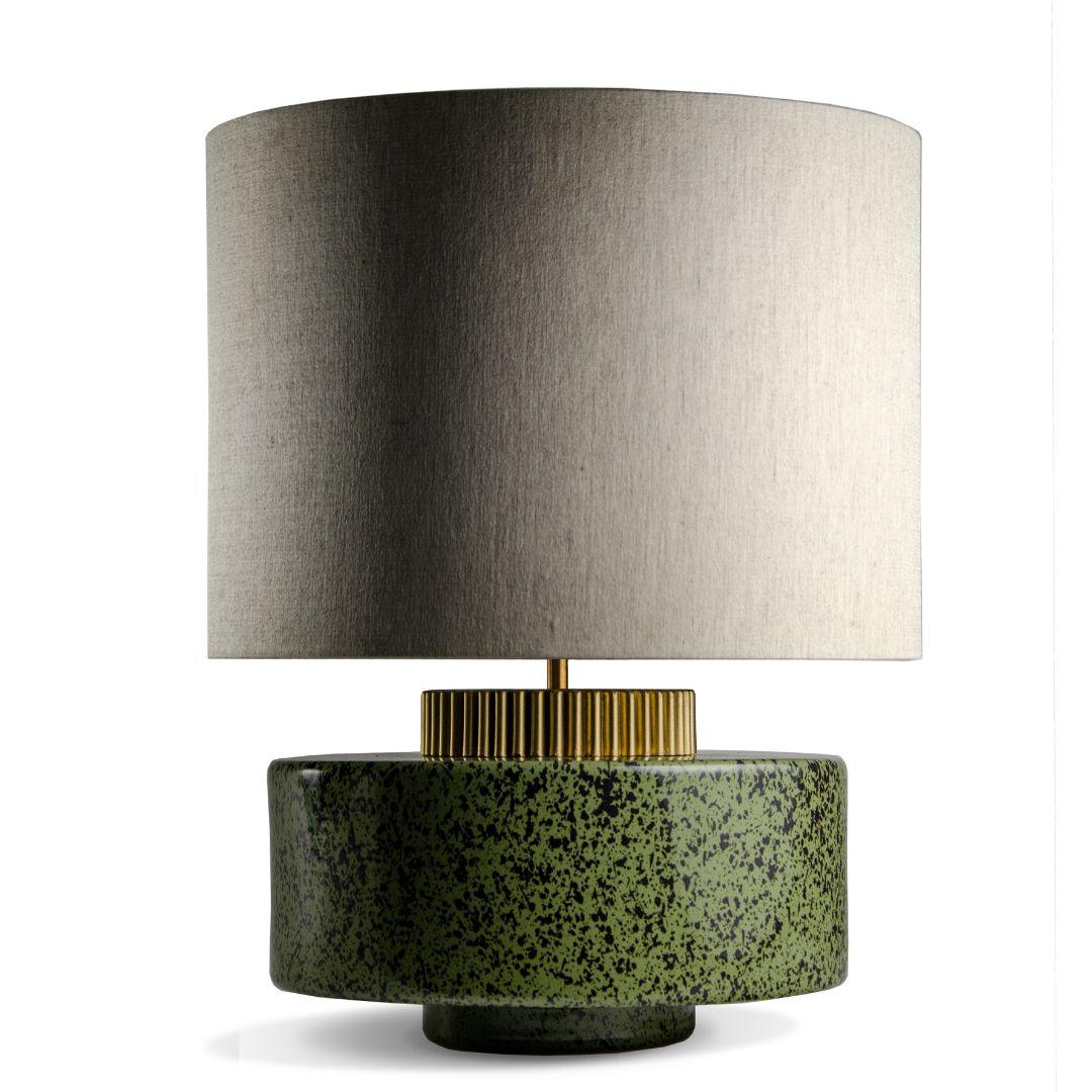 Die Tischleuchte "Marlowe" von Porta Romana erinnert an eine gedrungene Lampe im Stil der 70er Jahre. Bei der handgearbeiteten Leuchte wird der glasierte Lampenfuß aus Keramik durch einen gerillten Messingkragen vervollständigt, der einem Zahnrad ähnelt. Die exklusive Tischleuchte „Marlowe“ passt besonders gut als Lichtquelle auf Beistelltische, Kommoden oder Nachttische. Für die bestmögliche Passung in Ihr privates Umfeld, haben Sie die Wahl zwischen vielen Optionen zur Individualisierung.