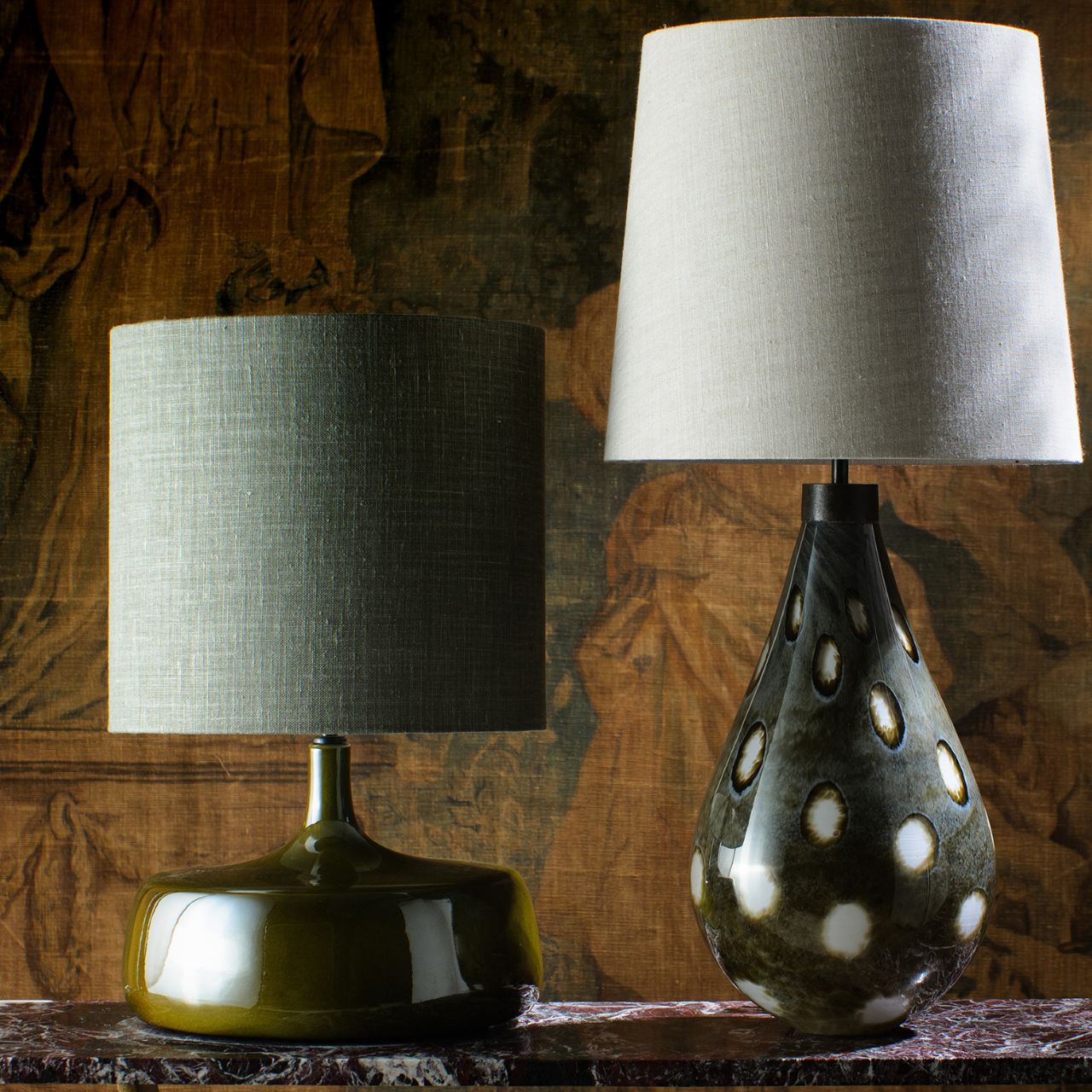 Die handgefertigte Tischleuchte "Piper" von Porta Romana ist nach dem britischen Maler und Grafer John Piper benannt worden. Aus glasiertem Steingutton gebrannte schwere Basis geht in einen schlanken Hals über. Durch den mehrfachen Glasur- und Brennprozess hat jede Boublé ihre eigene individuelle Markierung und kein Boublé gleicht der anderen. Als Lampenschirm wird der 13" Low Hat empfohlen. Die exklusive Tischleuchte „Piper“ passt besonders gut als Lichtquelle auf Beistelltische, Kommoden oder Nachttische. Für die bestmögliche Passung in Ihr privates Umfeld, haben Sie die Wahl zwischen vielen Optionen zur Individualisierung.