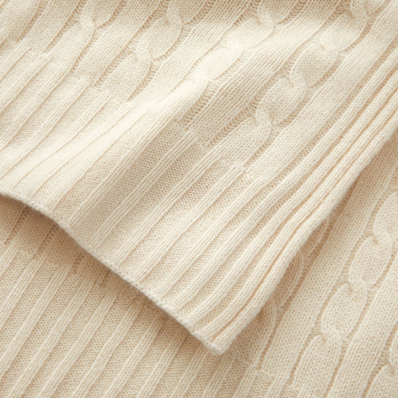 Erleben Sie pure Luxusmomente mit der exquisiten Tagesdecke "RL Cable" von Ralph Lauren aus 100 % Kaschmir. Das Plaid präsentiert sich mit dem ikonischen Zopfmuster von Ralph Lauren – einem absolut zeitlosen Design, das jedem Raum eine subtile, elegante Struktur verleiht. Die außergewöhnlich leichte und zugleich angenehm wärmende Qualität des Kaschmirs macht dieses Plaid zu einem perfekten Begleiter für entspannte Stunden. Das Zopfmuster sowie das fein gerippte Finish an allen Kanten unterstreichen den raffinierten Charakter dieses Wohnaccessoires. Ob auf dem Bett, Sofa oder Lieblingssessel – das Plaid Cable bringt Wärme, Stil und einen Hauch von moderner Noblesse in Ihr Zuhause. Ein unverzichtbares Highlight für alle, die Wert auf feinste Materialien und zeitloses Design legen. Die Größe von 150 x 150 cm ist ideal für Bett, Sofa oder als stilvolle Ergänzung Ihrer Wohnkultur.