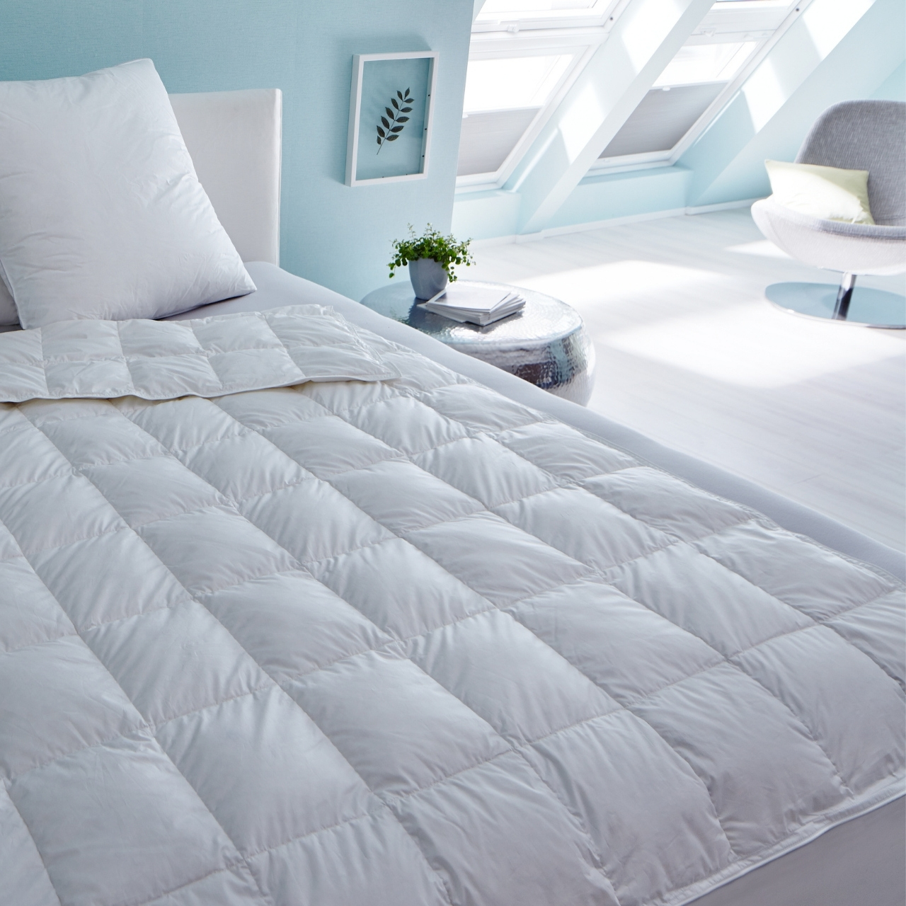 - Lüften Sie Ihre Daunendecke regelmäßig bei trockenem Wetter an der frischen Luft