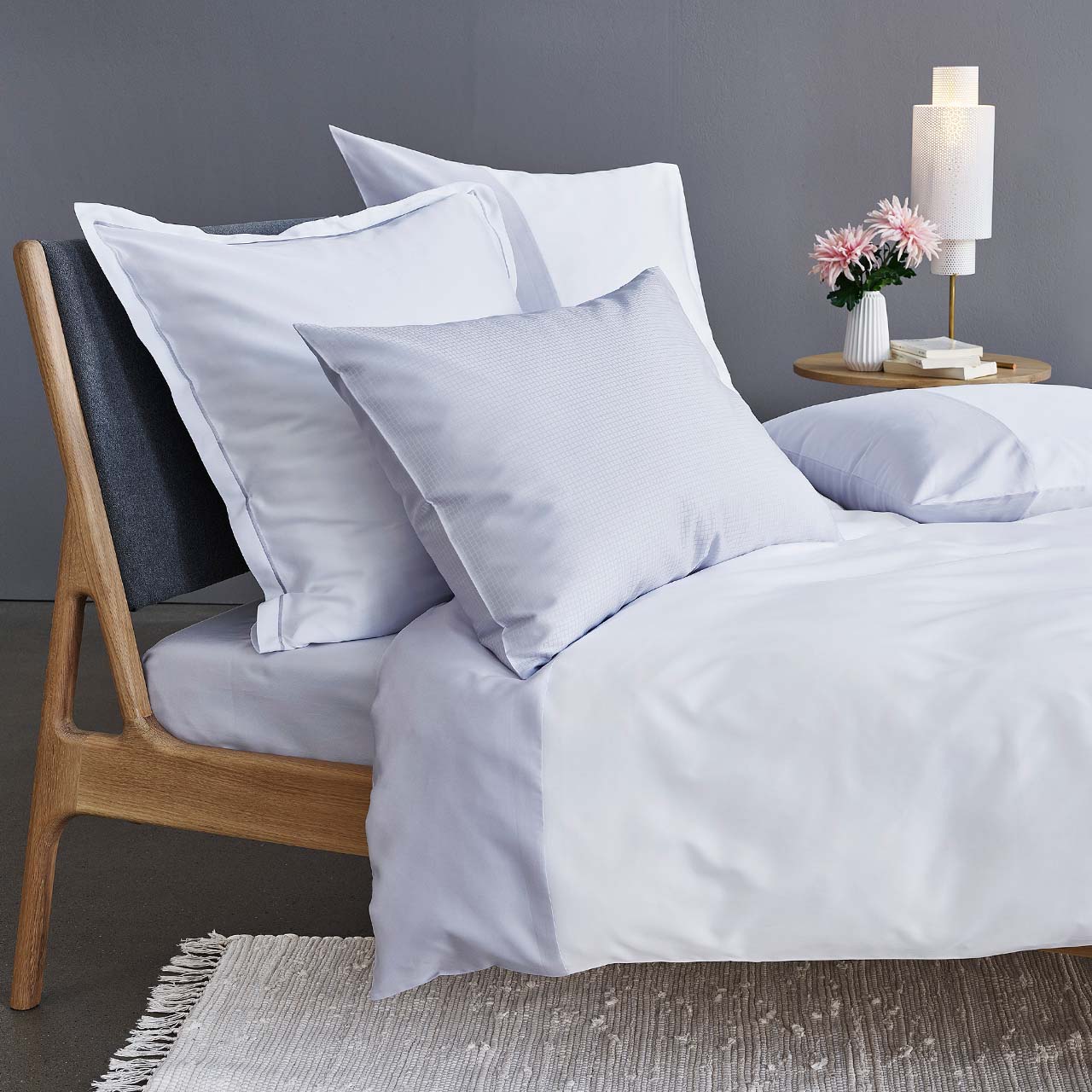 Die Satin-Bettwäsche "Allen" von Schlossberg Switzerland ist eine Komposition aus zwei Farben. Die beiden ruhigen Flächen der Bettwäsche aus Satin Noblesse werden durch eine Naht miteinander verbunden, vereinen sich durch eine Naht zum zweifarbigen Miteinander. In Ihrem Schlafraum gibt Ihnen diese Bettwäsche aus der Hauptfarbe Weiss in Kombination mit den Farben glace oder sable einen zeitlosen Look.
