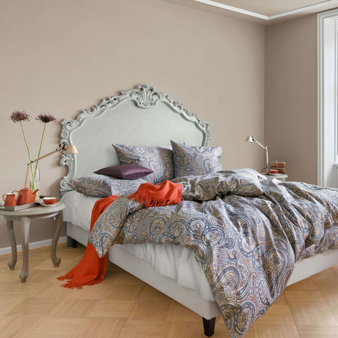 Die Jersey-Bettwäsche "Perinn" von SCHLOSSBERG SWITZERLAND ist ein Klassiker mit dem zeitlosen, sehr feinen Paisley-Muster. Das ursprünglich aus Persien stammende Paisley Dessin ist eines der weltweit ältesten Muster. Es ist orientalisch opulent, aufgrund seiner Farbharmonie jedoch außerordentlich elegant.