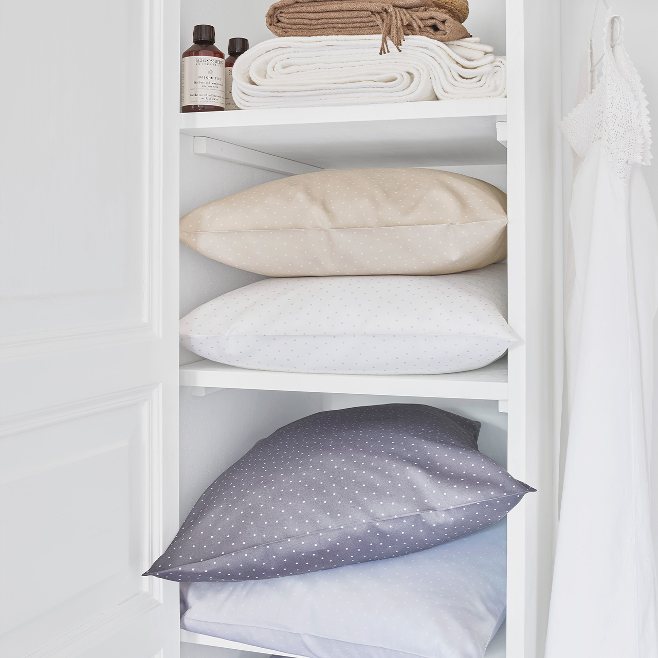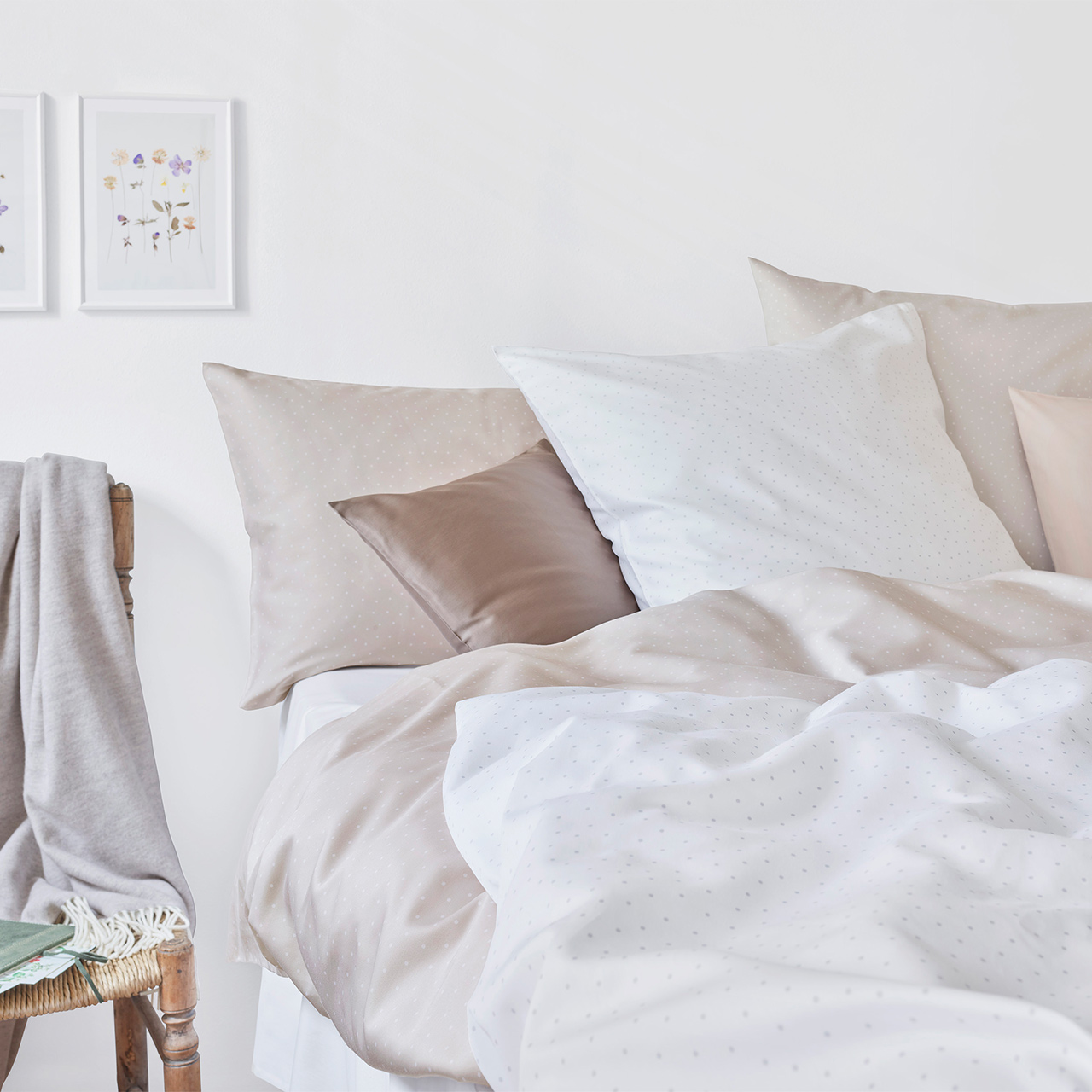 Die ganz zart und fein gepunktete Bettwäsche "Emily" von Schlossberg Switzerland schafft in jedem Schlafzimmer eine unverwechselbare Atmosphäre. Die Garnitur verfügt über eine einzigartige Bio-Baumwolle-Qualität und ist in den Farben anthrazit, beige, grau und weiß verfügbar. Die hochwertigen Materialien sowie das zeitlose Design machen "Emily" zu einem echten Unikat mit verschiedensten Kombinationsmöglichkeiten zwischen den verschiedenen Farbstellungen, aber auch anderen Schlossberg Dessins.