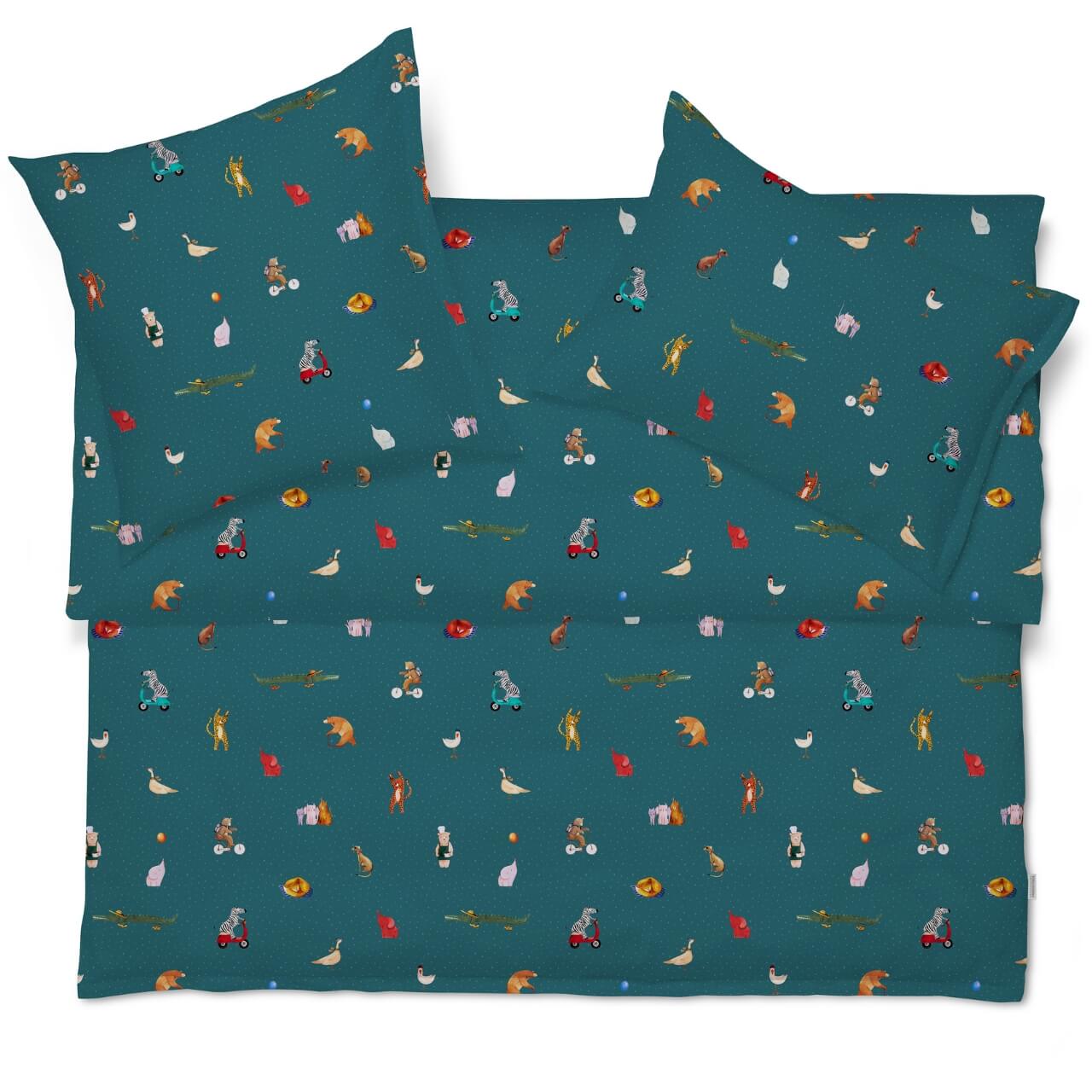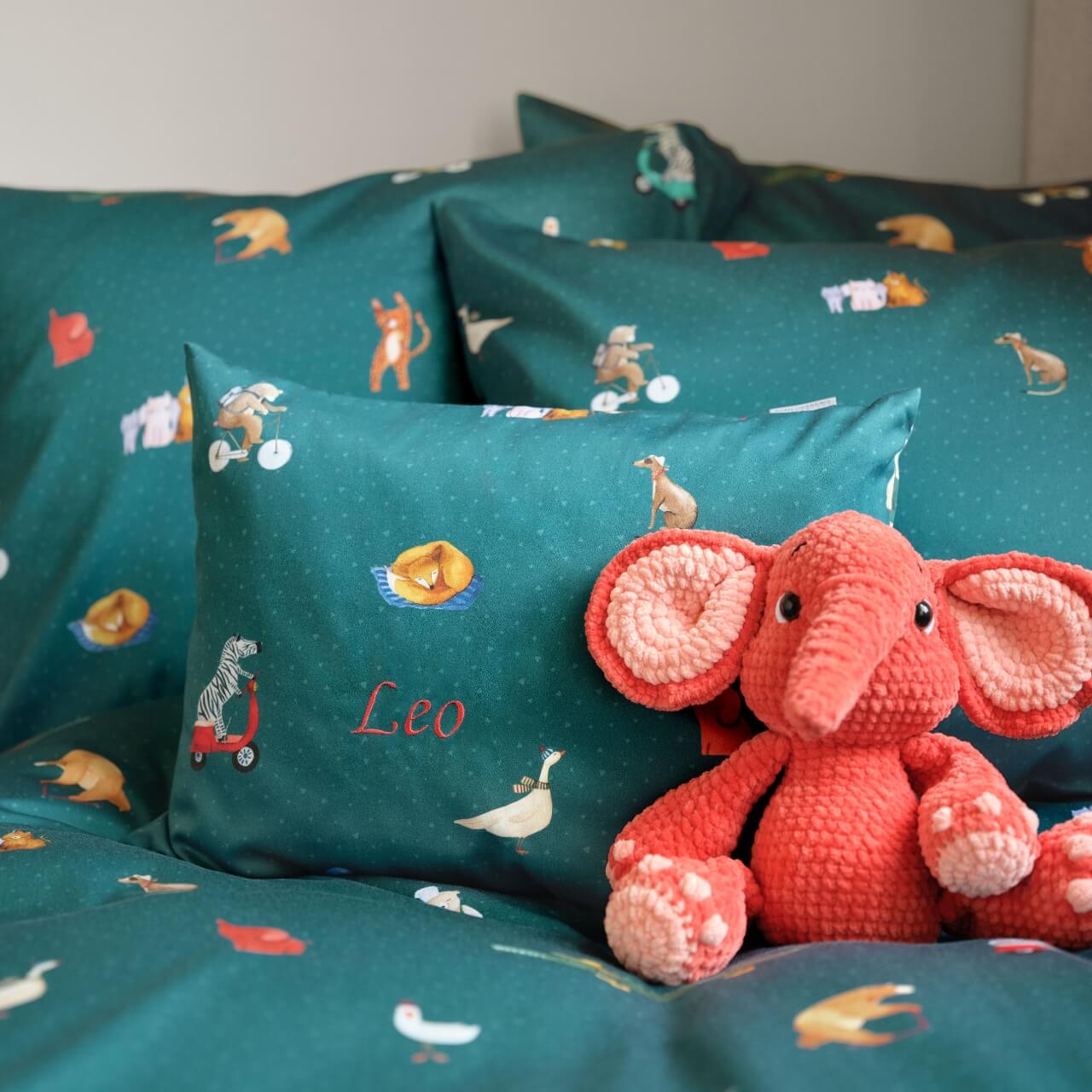 Die Bettwäsche "Party Leo" von SCHLOSSBERG SWITZERLAND bietet für jede Nacht etwas Neues für die Traumreise zu einer freudigen Party . Es gibt viel zu entdecken, denn alle Freunde sind einladen und feiern ganz ausgelassen. Der erste Gast kommt schnell auf der Vespa herbei - es ist das Zebra -, während der Bär mit dem E-Scooter kommt und der Elefant bunte Ballos und die Katzen Partyhüte für alle mitbringen. Der Fuchs verschläft, ganz schlau wie immer, das Fest und das Krokodil versteckt sich unter einem großen, schönen Hut. Die detailreiche Darstellung wurde mit viel Liebe zum Detail gestaltet und begleitet Sie somit sowohl im Alltag als auch auf jeder Traumreisen. Das verwendete Satin Noblesse ist von höchster Qualität und bietet einen seidigen Glanz, brillante Farben und eine feine Oberflächenstruktur. Zusätzlich ist das Material atmungsaktiv, pflegeleicht und besonders langlebig.
