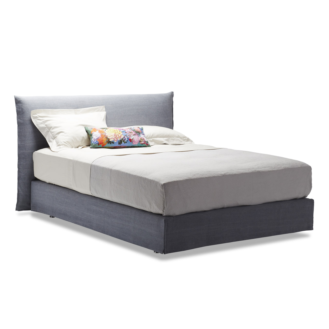 Das Preisbeispiel basiert auf einem Bezugsstoff der Stoffkategorie #1, einer Untermatratze, dem Kopfteil "Loft" mit einer Höhe von 97 cm und Breite wie das Bettgestell, sowie schwarzen Füßen aus Buchenholz in der Standardversion. Die Matratzen sind nicht inkludiert.