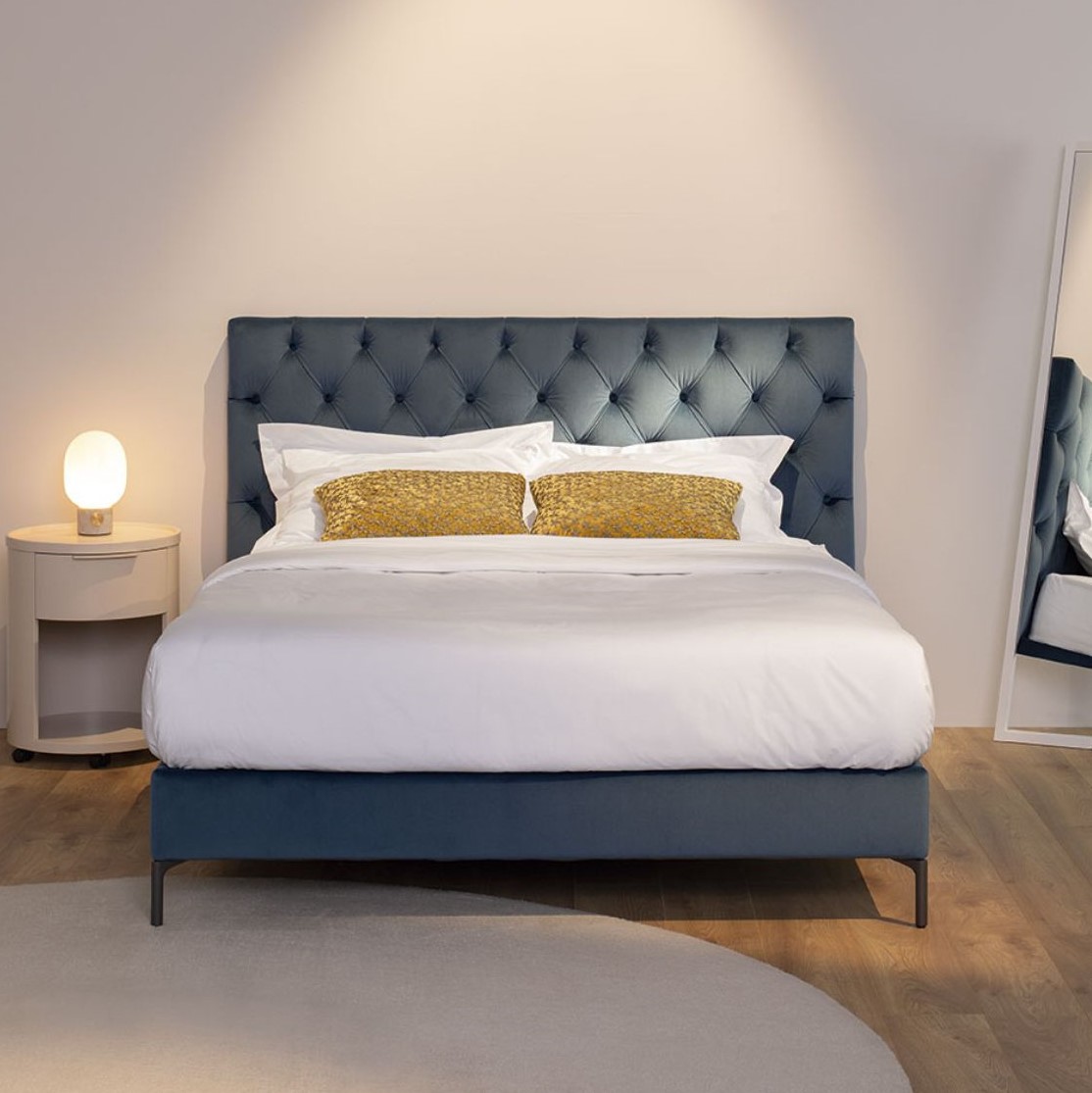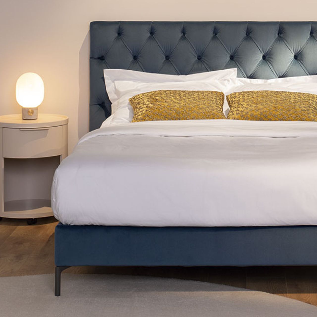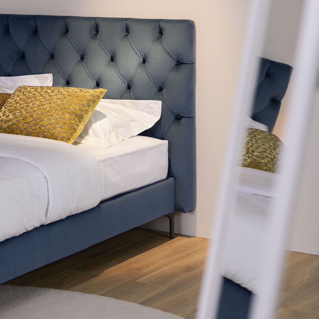 Das Polsterbett "Origins Basis 18 Claire" von Schramm ist das perfekte Bett für alle, die Handwerkskunst und modernes Design schätzen. Das "schwebende" Kopfteil "Claire" ist das Herzstück dieses Bettes und steht für die gelungene Verbindung von Tradition und Innovation. Das Kopfteil besticht durch seine klassische Knopfheftung und die charakteristischen Falten, die durch die Rautenform entstehen. Dies veranschaulicht die hohe Kunst der Polsterung und verleiht dem Bett eine zeitlose Eleganz. Das Bett ist in verschiedenen Stoffen und Farben erhältlich, sodass es perfekt zu Ihrem Einrichtungsstil passt. Es kann sehr gut mit einer Taschenfederkernmatratze "Heaven", "Mythos", "Divina", "Emotion" oder "Emotion Luxe" kombiniert werden, wodurch es für einen traumhaft erholsamen Schlaf sorgt. Zudem wird das Polsterbett von erfahrenen Handwerkern in Deutschland hergestellt und erfüllt höchste Qualitätsstandards. Das Polsterbett "Origins Basis 18 Claire" ist ein zeitloses und zugleich modernes Möbelstück, das in jedem Schlafzimmer zum Blickfang wird.