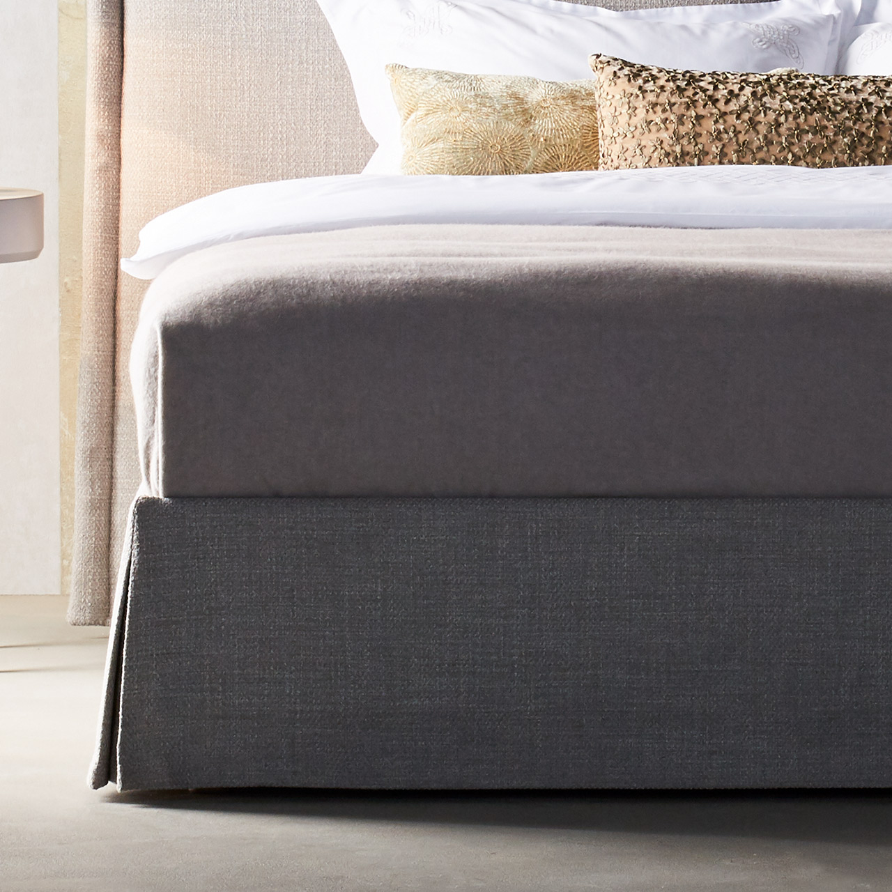 Das Preisbeispiel basiert auf einem Bezugsstoff der Stoffkategorie #1 und dem Kopfteil "Side K84-1", welches eine Höhe von 120 cm besitzt und 24 cm breiter als die gewählte Breite der Liegefläche ist. Das Bettgestell "Origins Basis18 " ist ebenfalls im Preisbeispiel inbegriffen. .
