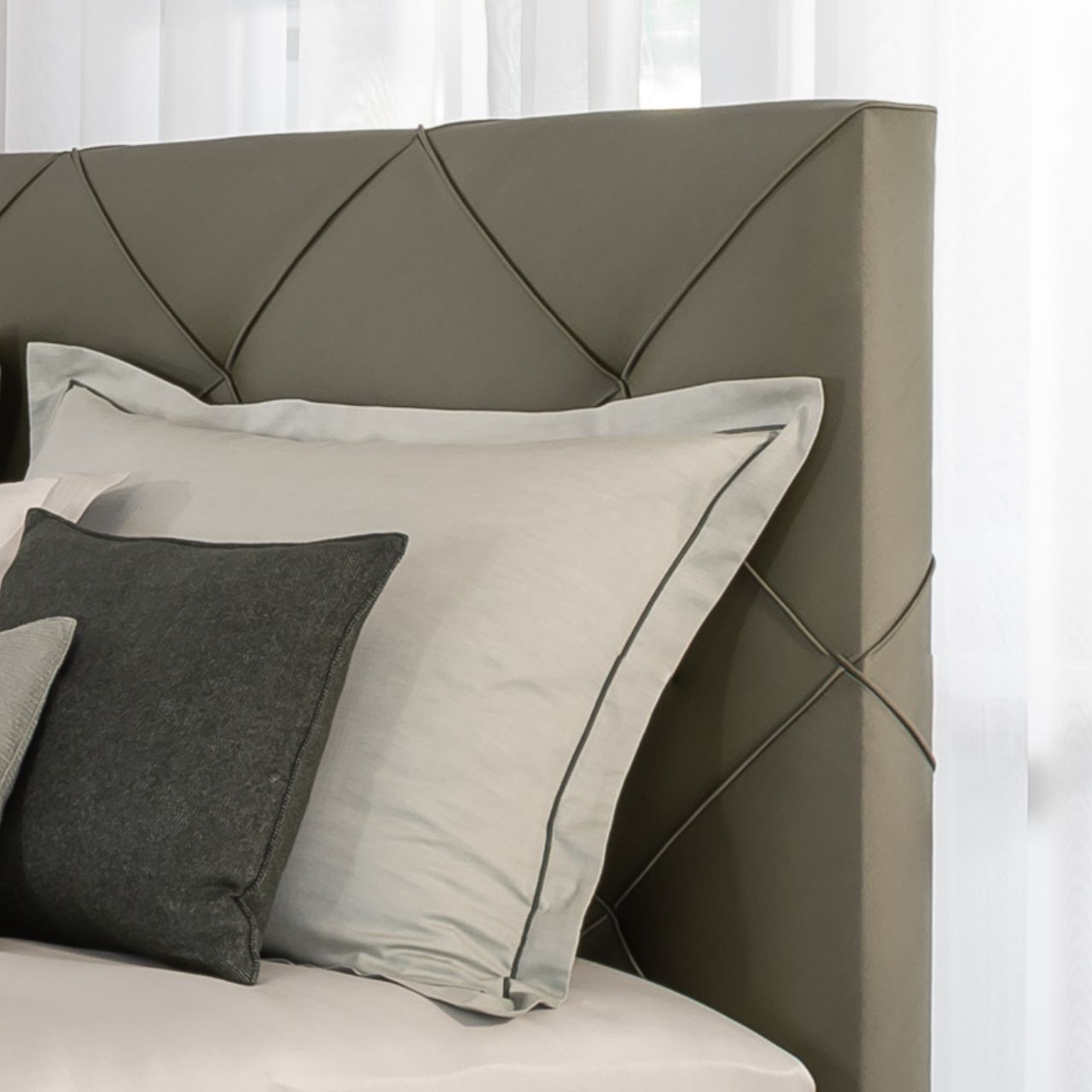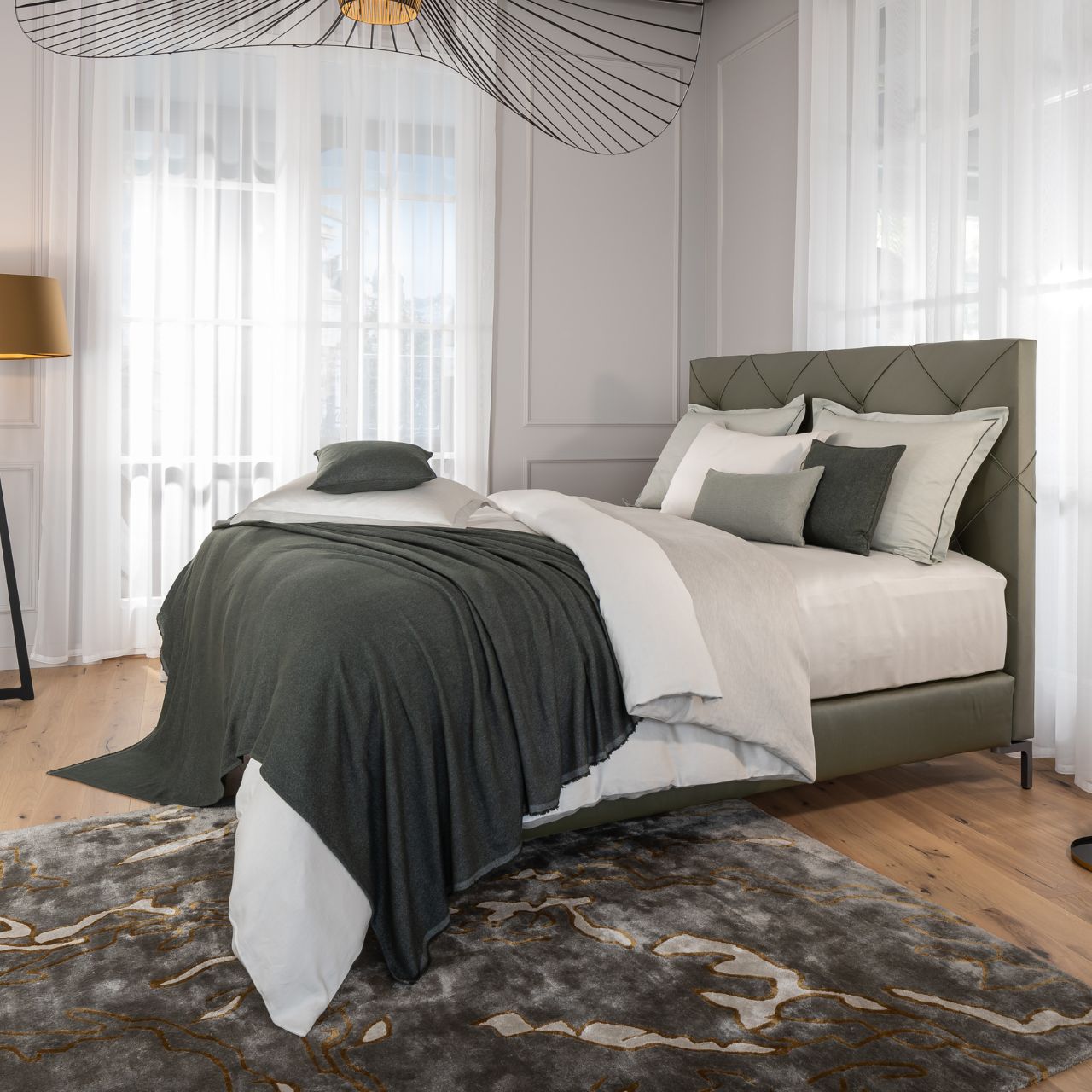 Das Preisbeispiel basiert auf einem Bezugsstoff der CAT A und dem Kopfteil "Chloé", welches eine Höhe von 125 cm oder 150 cm besitzt und genauso breit wie das Bettgestell ist. Die Matratze "Imperial Symbiose Prestige", das Untergestell "Omega Spring" und die Metallfüße "Colette" sind ebenfalls im Preisbeispiel inbegriffen und können auf Wunsch individuell angepasst werden.