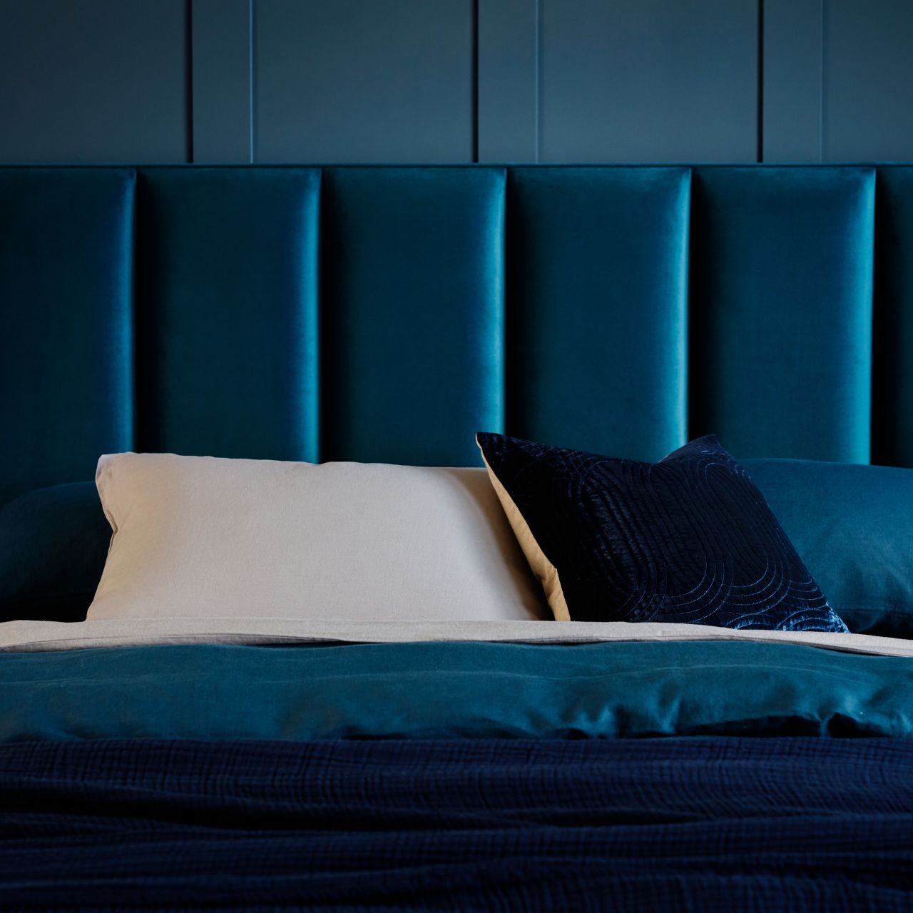 - Schlichtes Kopfteil mit gepolsterten Paneelen