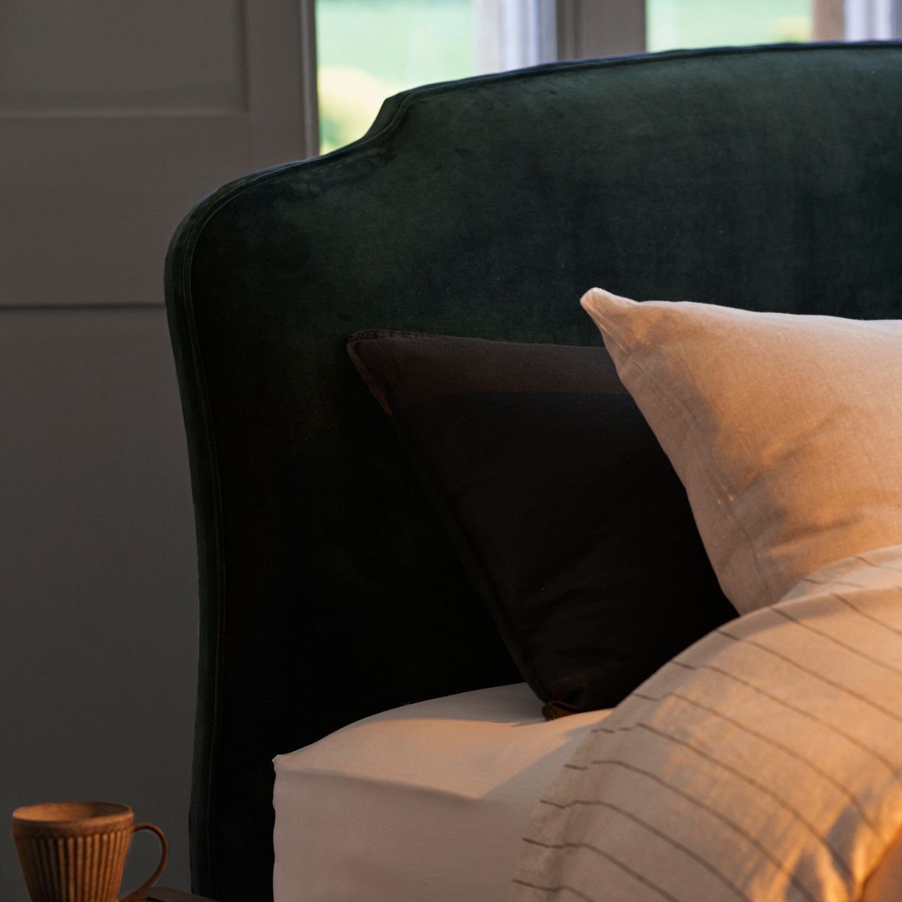 - Schlichtes Kopfteil mit geschwungener Linienführung