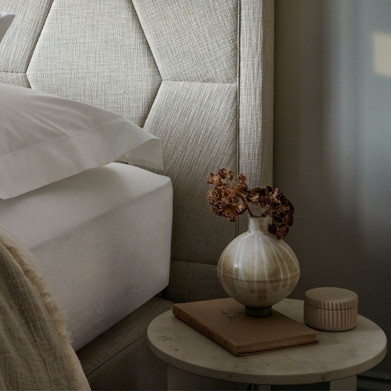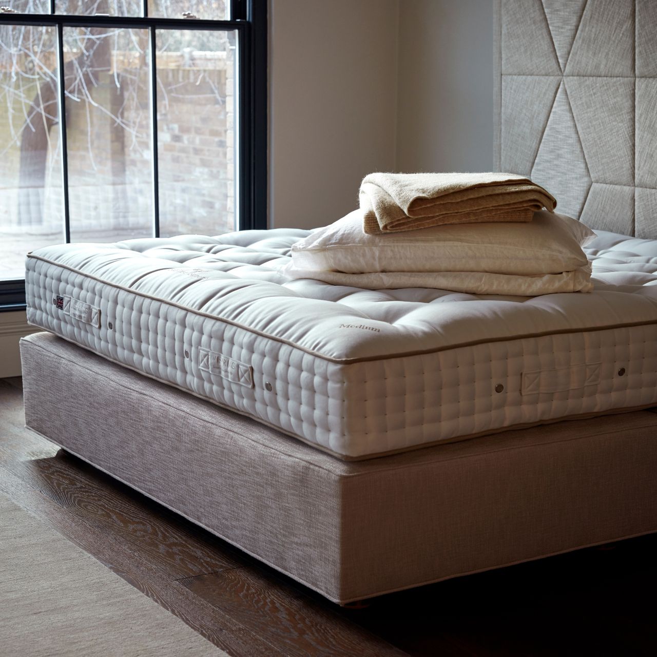 Bei der in UK traditionell handgefertigten Matratze, dem Divan und dem Kopfteil werden die erlesensten Naturfasern verarbeitet, um beste Stützkraft und höchste Weichheit zu ermöglichen. Dazu gehören britische Schurwolle, Rosshaar, Baumwolle und Kaschmir.