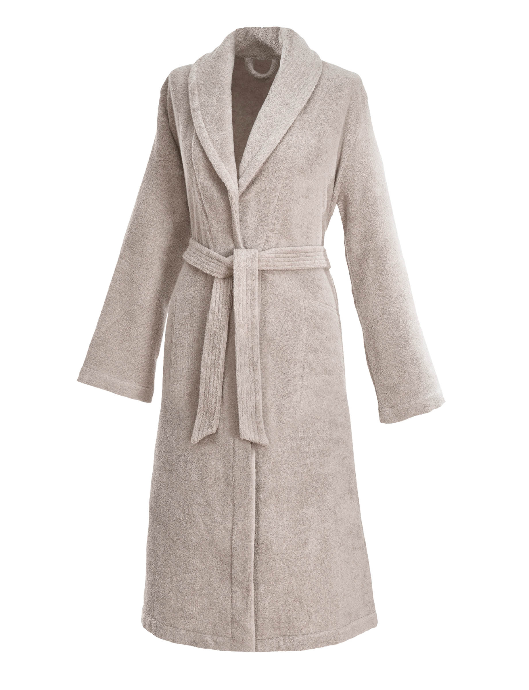 Dieser Damenmantel mit Schalkragen aus hochwertigem Weseta Dream Royal Frottier ist besonders dicht und mit langen Schlaufen gewebt und mit einer leichten Schwere super weich und kuschelig. Er ist ca. 120 cm lang - in allen Größen. Dieser Bademantel hat zwei aufgesetzten Taschen und Gürtelschlaufen, sowie einen Innengürtel zum besseren Halt.