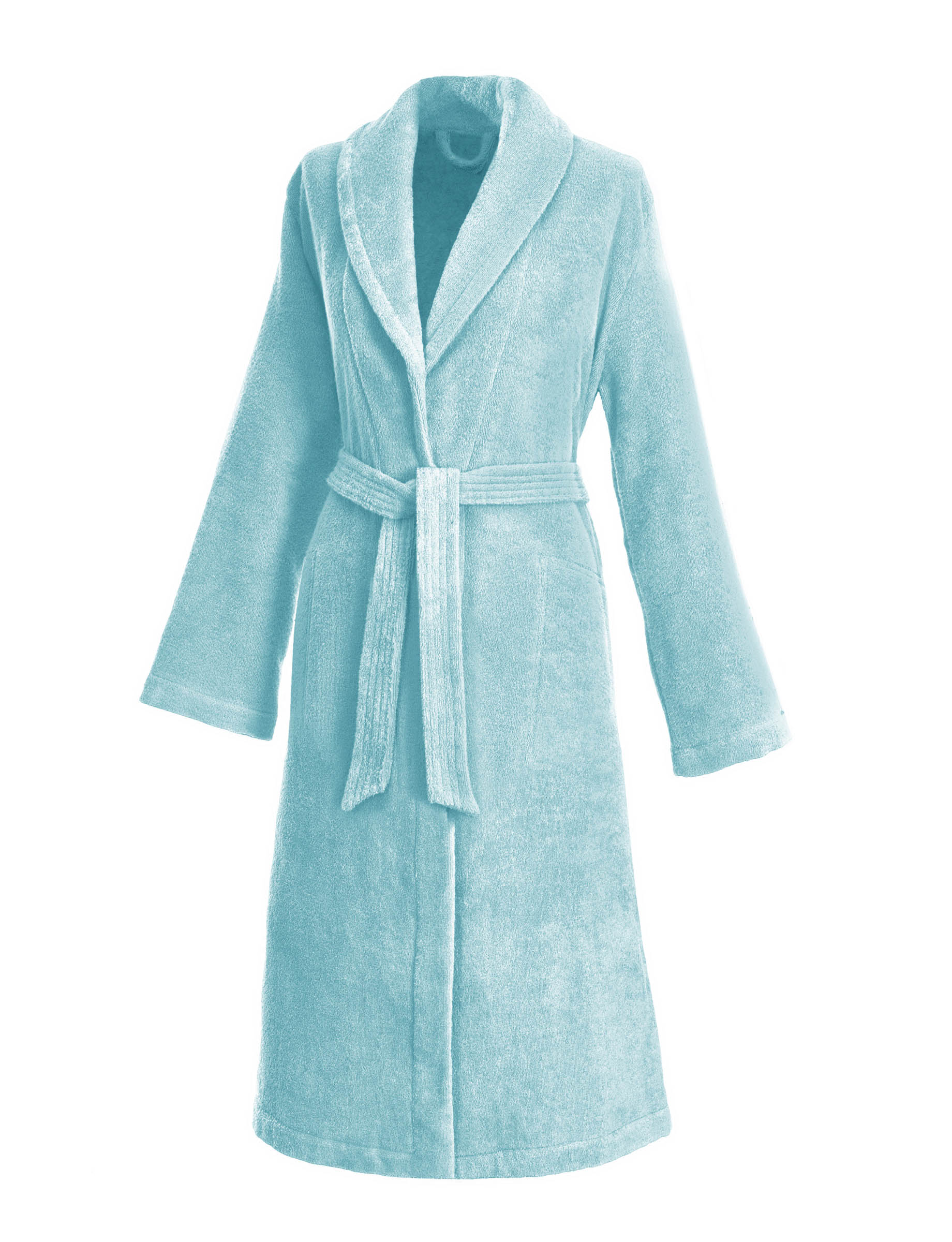 Dieser Damenmantel mit Schalkragen aus hochwertigem Weseta Dream Royal Frottier ist besonders dicht und mit langen Schlaufen gewebt und mit einer leichten Schwere super weich und kuschelig. Er ist ca. 120 cm lang - in allen Größen. Dieser Bademantel hat zwei aufgesetzten Taschen und Gürtelschlaufen, sowie einen Innengürtel zum besseren Halt.