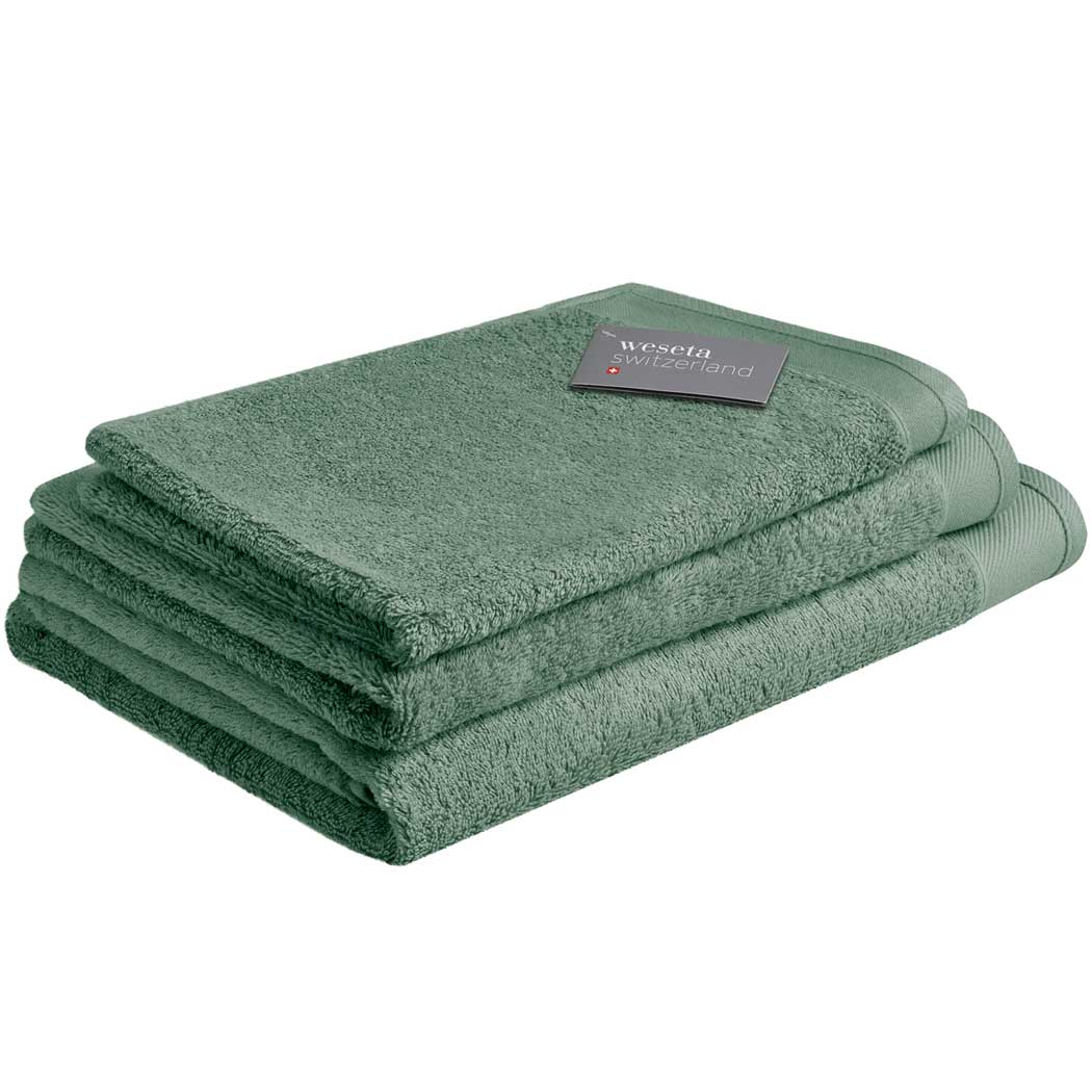 Luxusfrottier aus 100 % langstapeliger Baumwolle. Das Schweizer Frottiergewebe hergestellt nach dem einzigartigen Weseta-Verfahren ist aufgrund der besonderen Webtechnik außerordentlich weich, besonders leicht und extrem saugfähig. Es wird nachhaltig in der Schweiz produziert gemäß STANDARD 100 by OEKO-TEX.