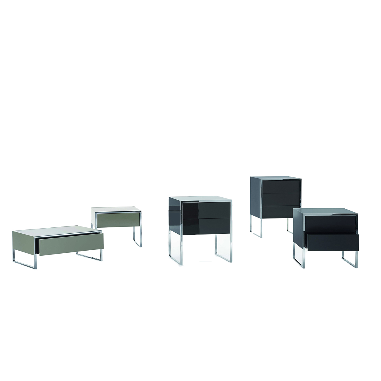 Der elegant Nachtschrank "Smart" von YOMEI überzeugt durch ein schwebendes Design, welches durch die Edelstahlkufen verstärkt wird. Der Korpus bietet, je nach Ausführung, bis zu drei Schubkästen mit reichlich Stauraum. Zudem verfügt der Nachttisch über eine innovative Stromversorgung innerhalb des Schubkasten, wodurch drei Geräte geladen werden können. Durch die Vielzahl an Konfigurationsmöglichkeiten fügt sich der Nachtschrank "Smart" perfekt in jedes Schlafzimmer.