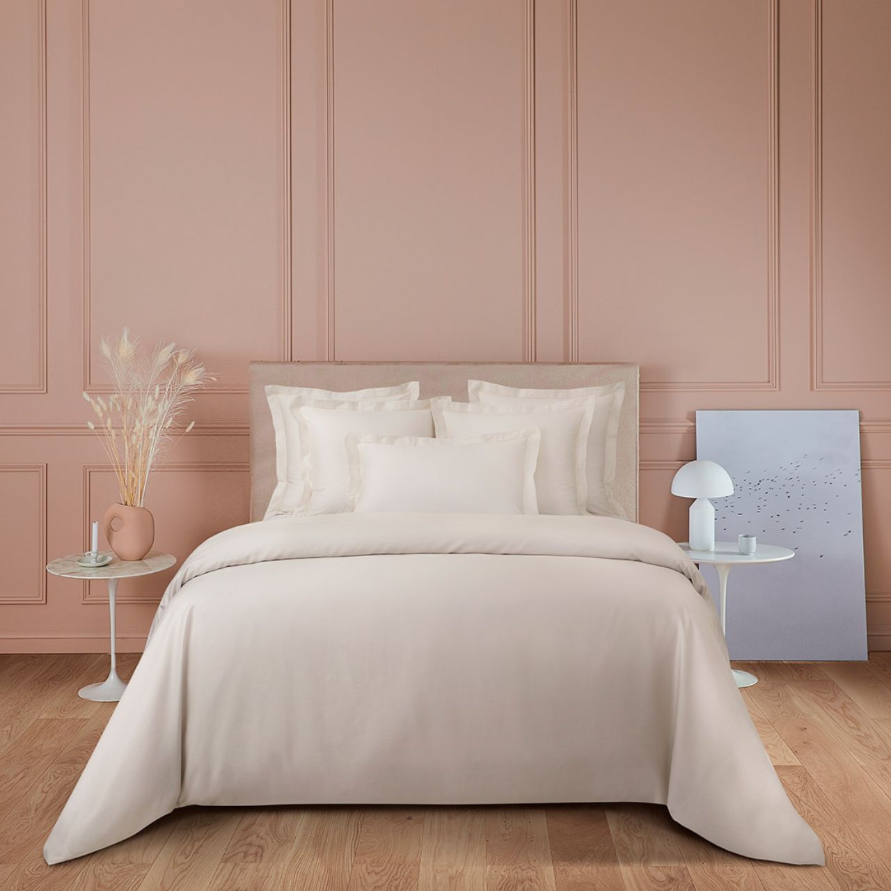 Die Bettwäsche „Triomphe“ begeistert mit einem schlichten, unifarbenen Design, das durch eine edle Ton-in-Ton-Kordel akzentuiert wird. Der luxuriöse Baumwollsatin mit 120 Fäden pro cm² sorgt für einen sanften Glanz und eine geschmeidige Haptik – ideal für Liebhaber stilvoller Schlichtheit.