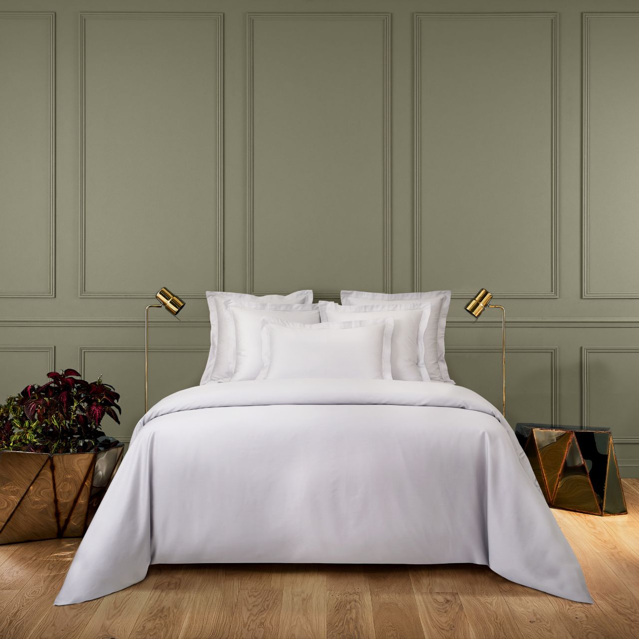 Die Bettwäsche „Triomphe“ begeistert mit einem schlichten, unifarbenen Design, das durch eine edle Ton-in-Ton-Kordel akzentuiert wird. Der luxuriöse Baumwollsatin mit 120 Fäden pro cm² sorgt für einen sanften Glanz und eine geschmeidige Haptik – ideal für Liebhaber stilvoller Schlichtheit.
